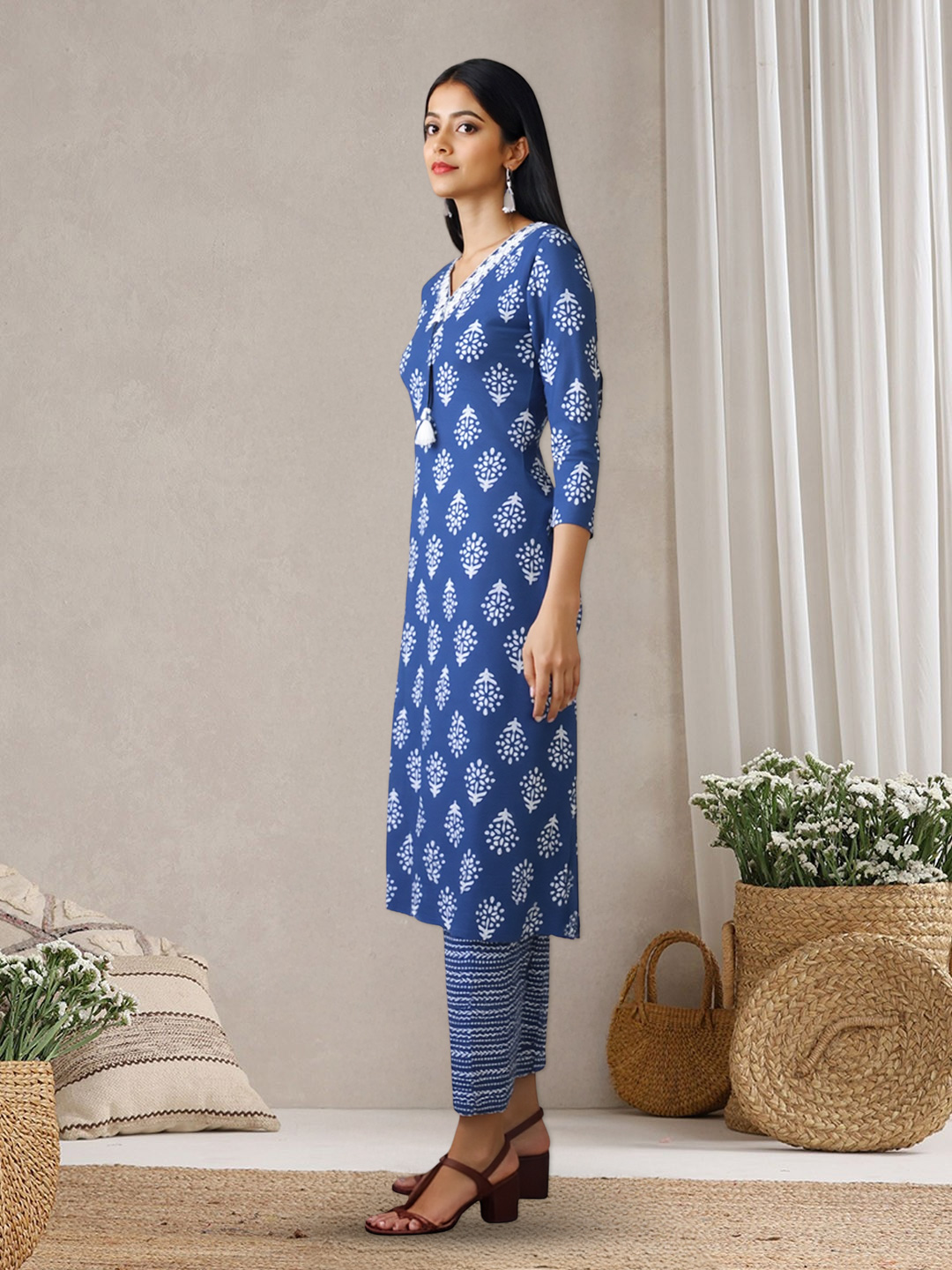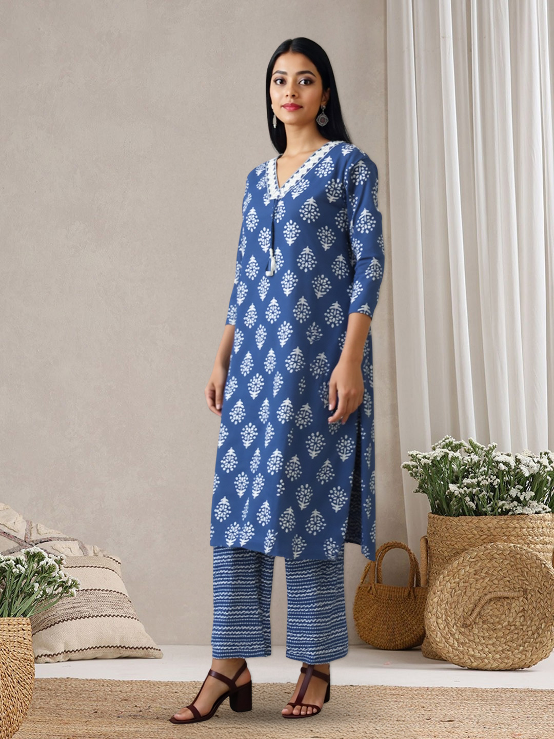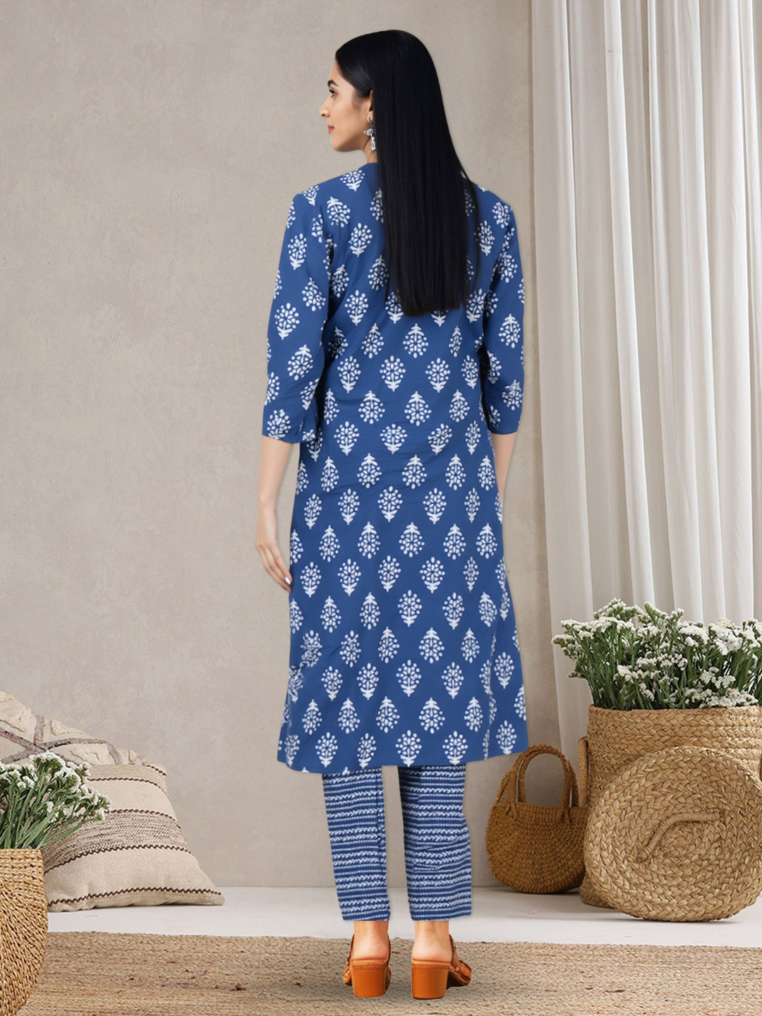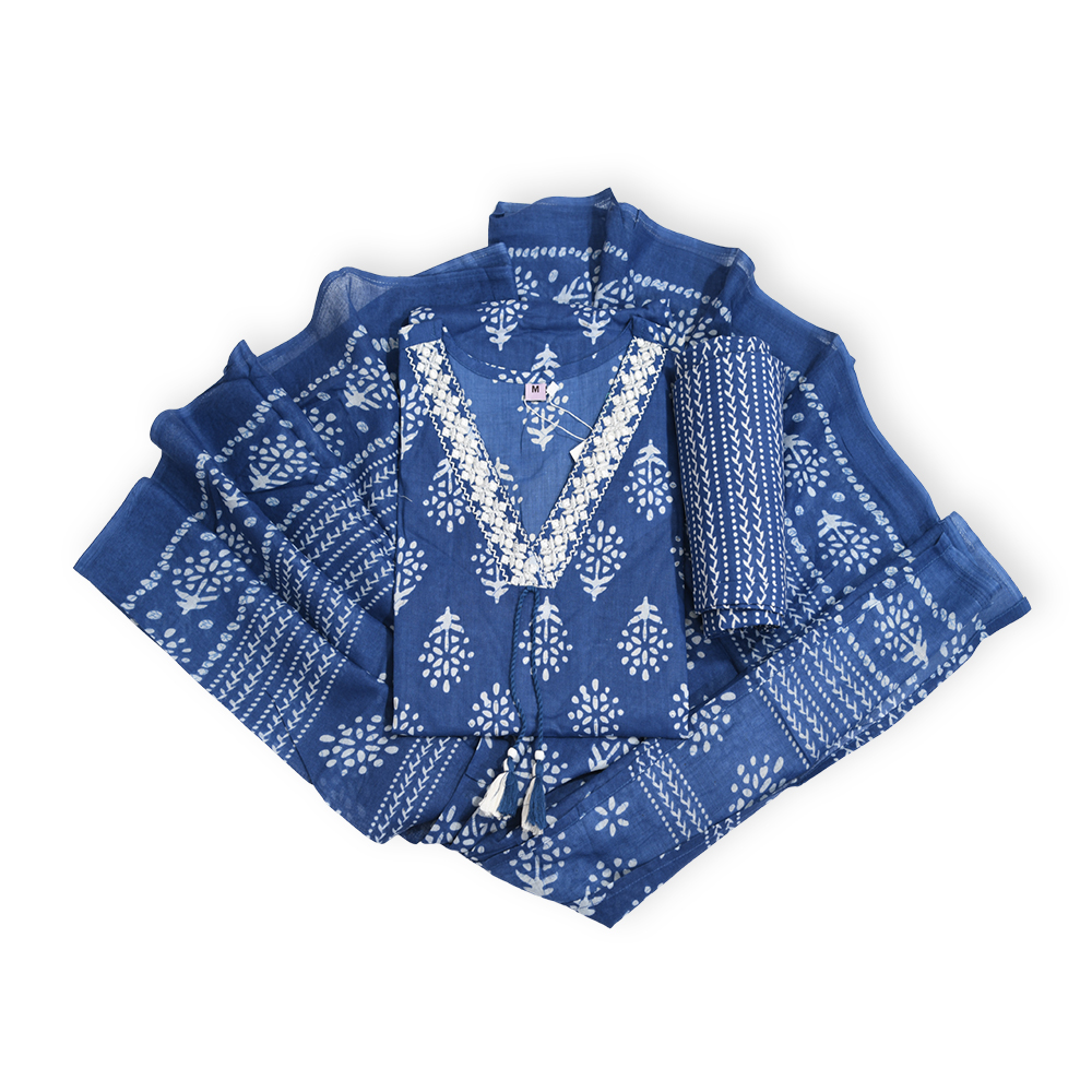 The dupatta completes the ensemble with grace, echoing the tones and patterns of the kurta and pants. Lightweight and elegant, it flows beautifully—ideal for layering or draping to suit your style.