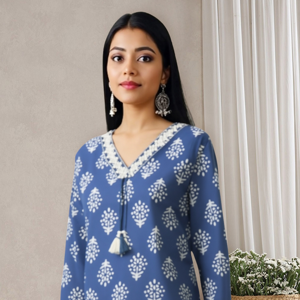 The beautifully embroidered V-neckline adds a sophisticated focal point to the kurta. Intricate threadwork draws the eye without overpowering, creating a perfect blend of subtlety and style.