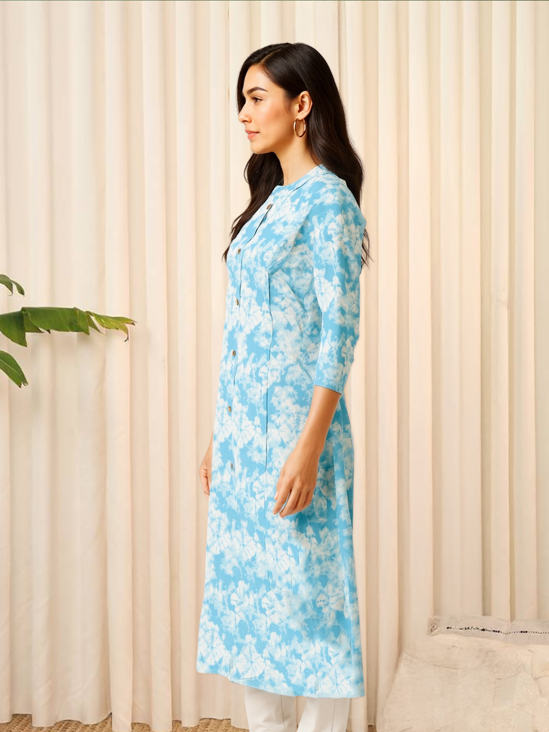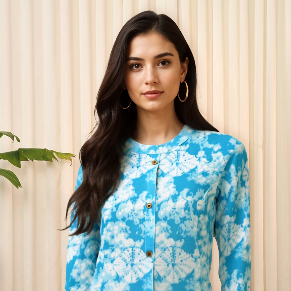 Make a statement without saying a word. This kurta features an all-over abstract tie-dye print that gives off an effortlessly chic vibe—perfect for sunny days, brunches, or artful evenings out.