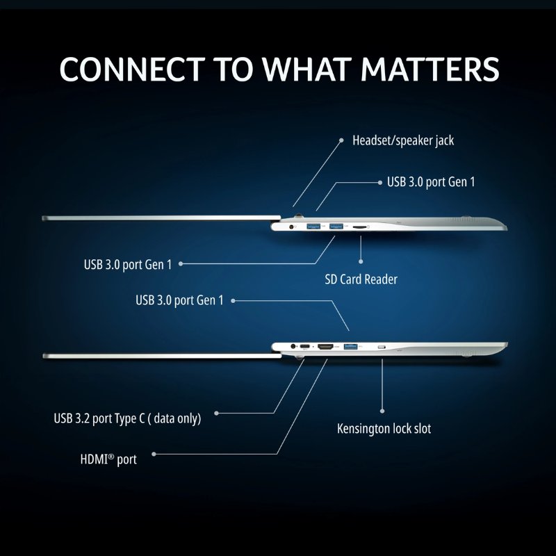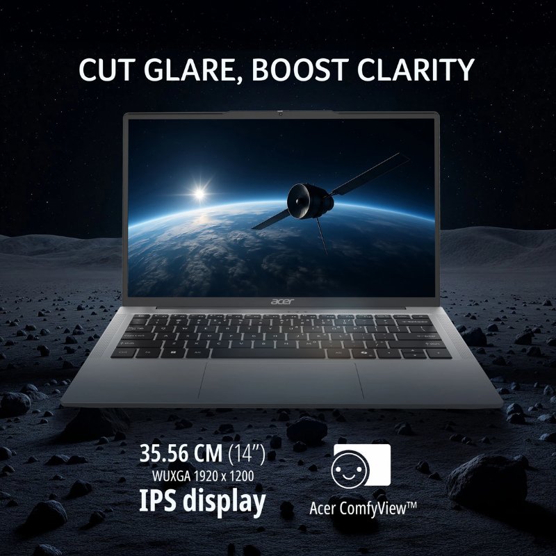 The 14-inch WUXGA (1920 × 1200) IPS display with a 16:10 aspect ratio offers more vertical screen space for productivity. Expect sharp details, vibrant colors, and wide viewing angles — perfect for work, streaming, and creative tasks.