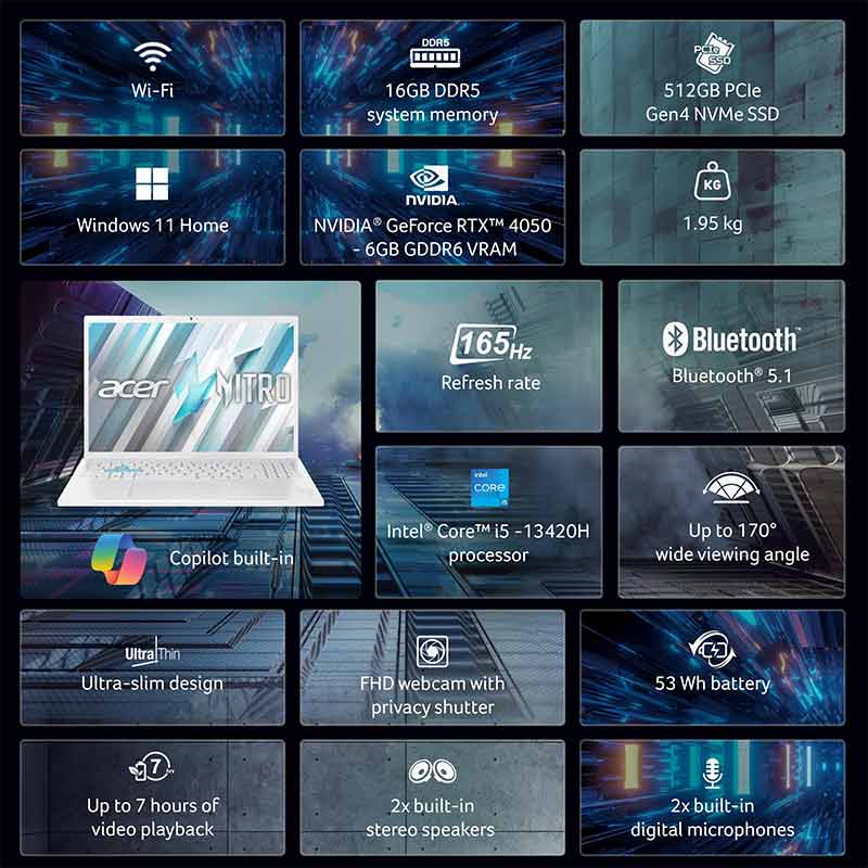 The Acer Nitro Lite comes pre-installed with Windows 11 Home, offering a sleek and intuitive interface, better security, and faster performance. Whether you're gaming, editing, or simply browsing, Windows 11 enhances your experience with advanced features designed to boost productivity and creativity.