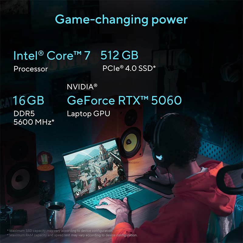 Fuel your gaming with the Intel Core Ultra 7 240H processor and a dedicated NVIDIA GeForce RTX 5060 8GB GDDR7 graphics card—excellent for high frame‑rates, ray tracing, and AAA gaming. Backed by 16GB RAM and a speedy 512GB SSD, you get smooth multitasking and near‑instant game load times.