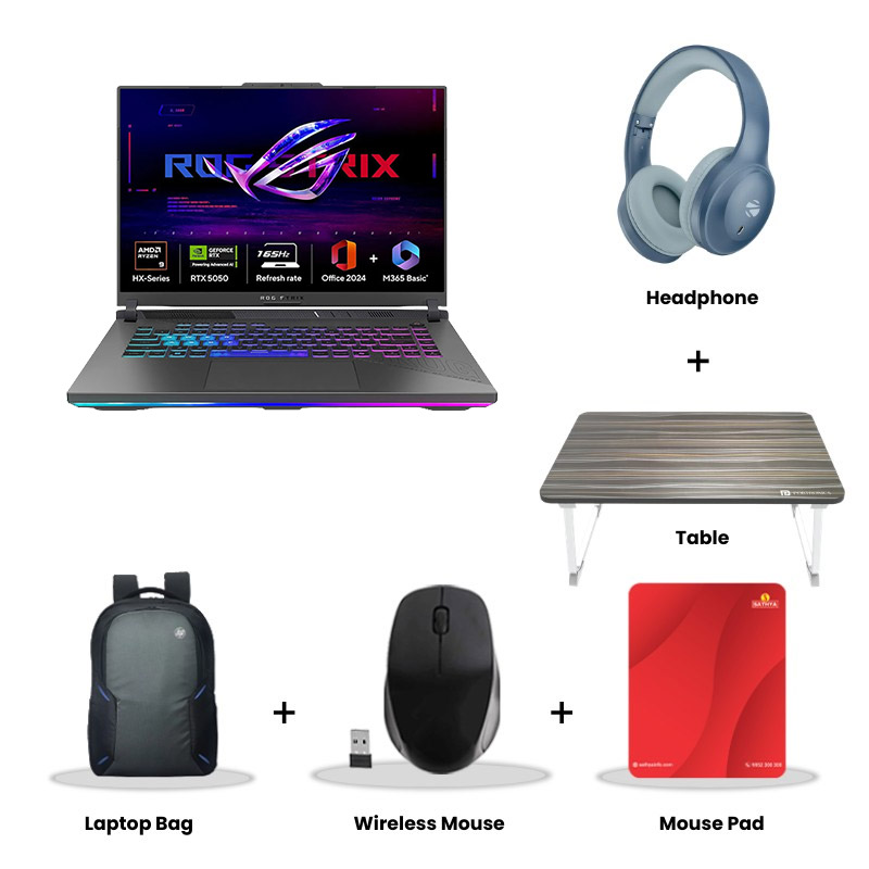 | Display | 40.64 cms (16) FHD+ 16:10 (1920 x 1200, WUXGA) Display having 16:10 Aspect Ratio || 3ms Response Time (G2G) || 165Hz Refresh Rate || 300nits Brightness || ROG intelligent cooling |