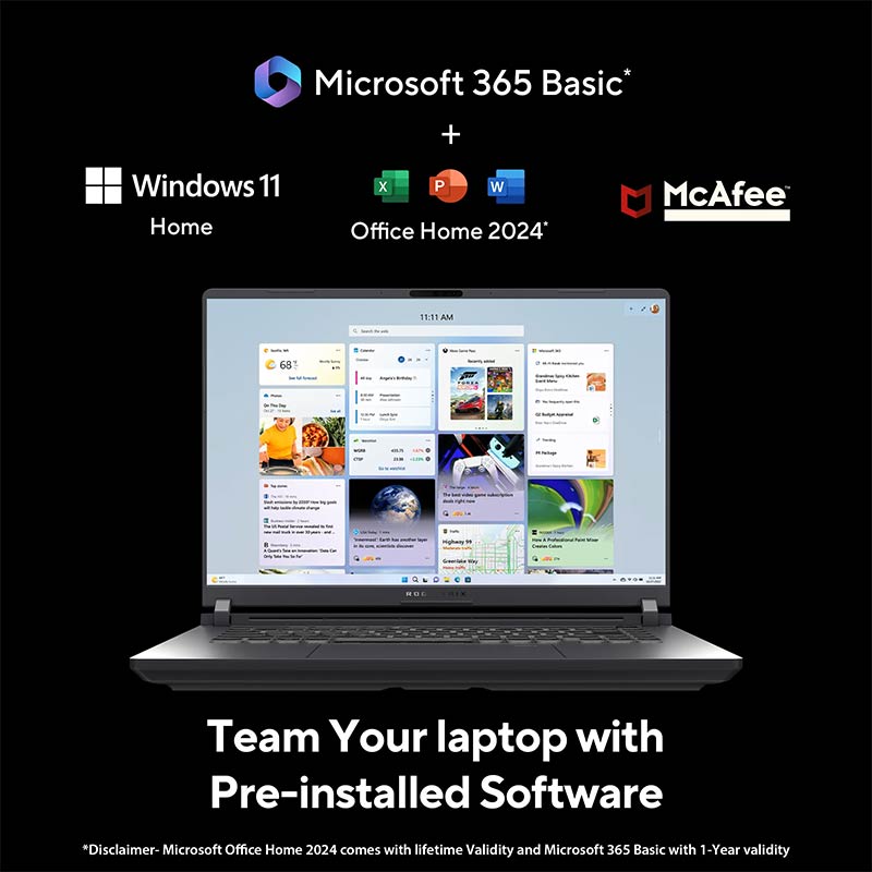 With Windows 11 Home, the Strix G16 offers a streamlined, secure, and modern OS that is optimized for performance. Whether you’re working or gaming, the system runs smoothly and efficiently. Plus, Office Home 2024 and M365 Basic (1-year validity) are pre-installed, offering full productivity tools right out of the box.