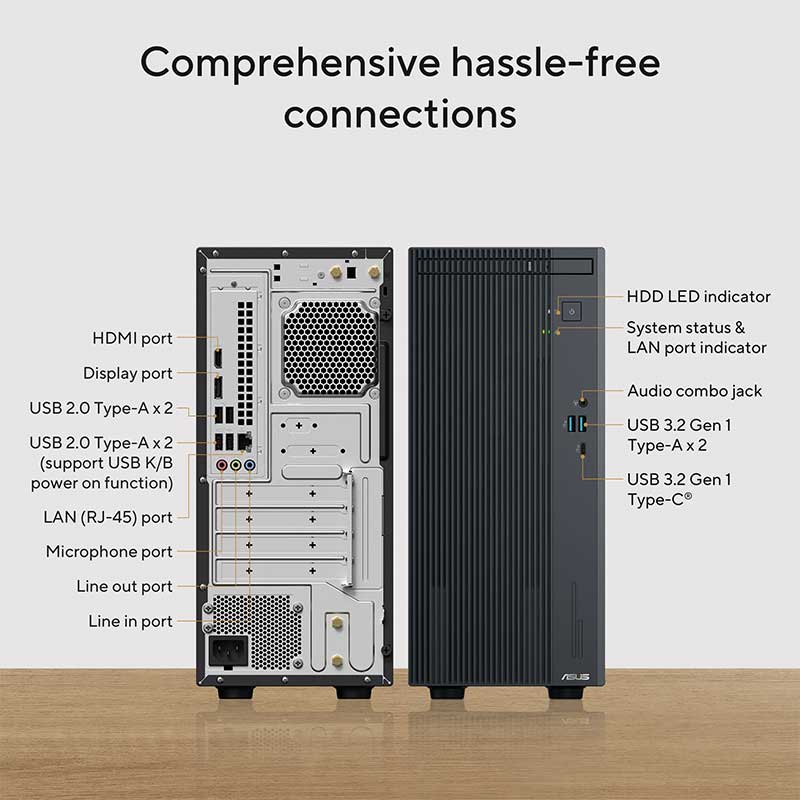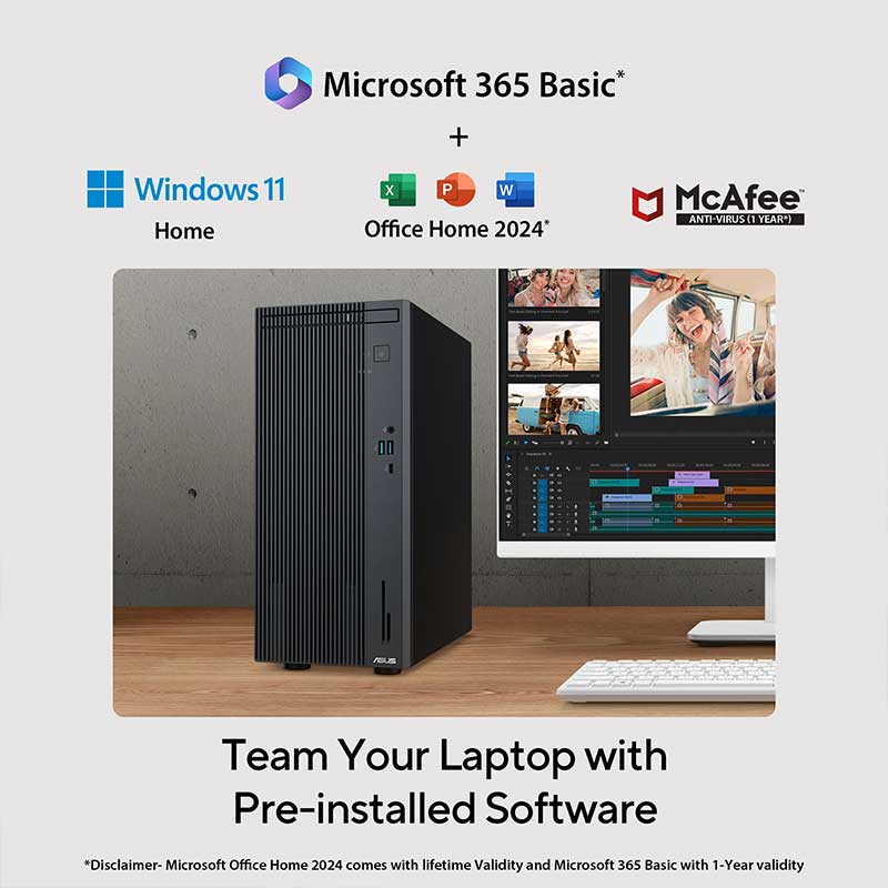 The ASUS V500 Mini Tower PC delivers powerful performance in a compact design, making it ideal for everyday tasks. Equipped with a 13th Gen Intel Core i3-1315U processor, 8GB RAM, and a 512GB SSD, it ensures fast and responsive computing. Pre-installed with Windows 11 Home, Microsoft 365 Basic, and Office 2024, it's ready for productivity straight out of the box.