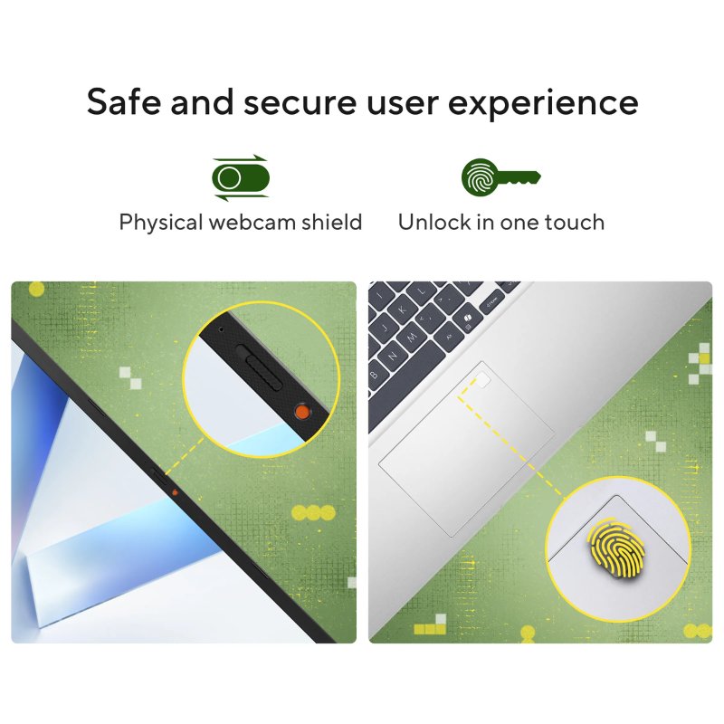 Equipped with 16GB DDR5 RAM, the Vivobook 15 offers efficient multitasking without lag. The 512GB SSD ensures quick boot times, faster file access, and ample space for documents, media, and applications. The combination of high-speed memory and storage makes everyday computing effortless and productive.