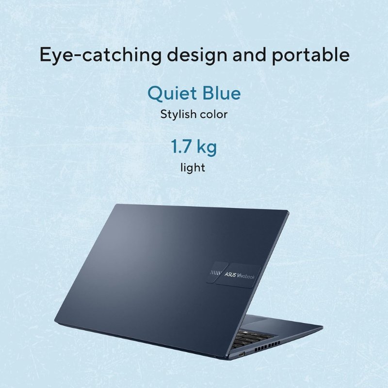Crafted in a stunning Quiet Blue finish, the Vivobook 15 stands out with its premium aesthetics. At just 1.70 kg, it’s lightweight enough to carry anywhere — your ideal companion for productivity on the move.