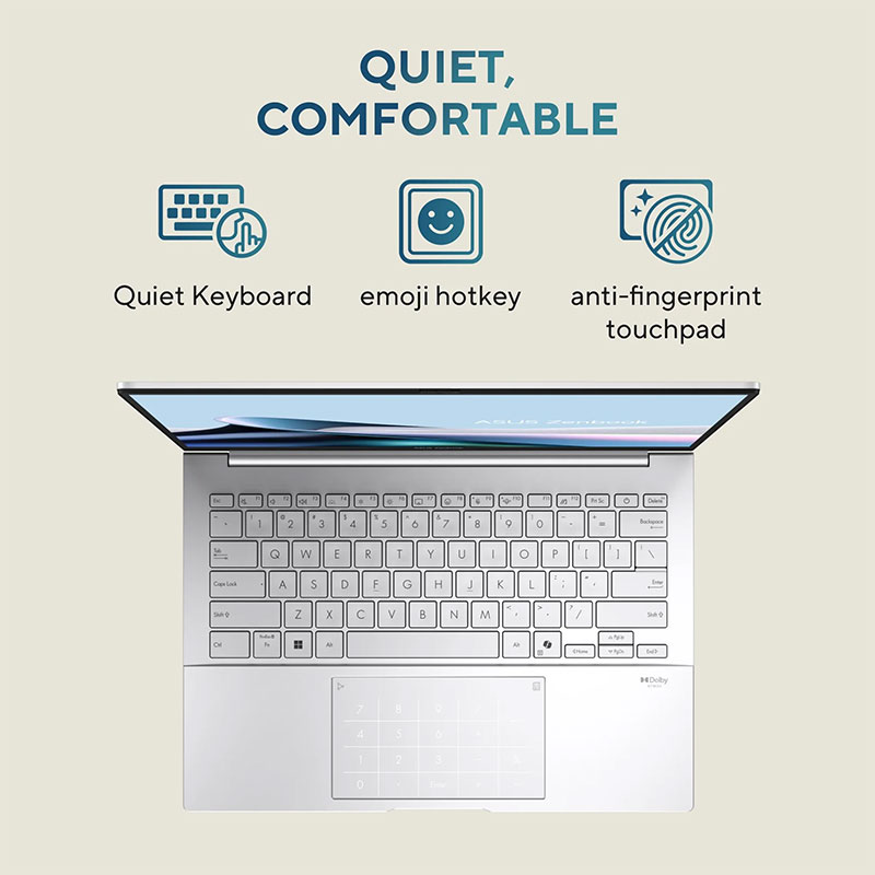 A massive 75Wh battery, fast charging (60% in under 50 mins), and essential ports like Thunderbolt 4, HDMI 2.1, USB-A, and 3.5mm jack make the Zenbook 14 OLED your perfect everyday companion. Stay connected, stay creative, stay unstoppable.