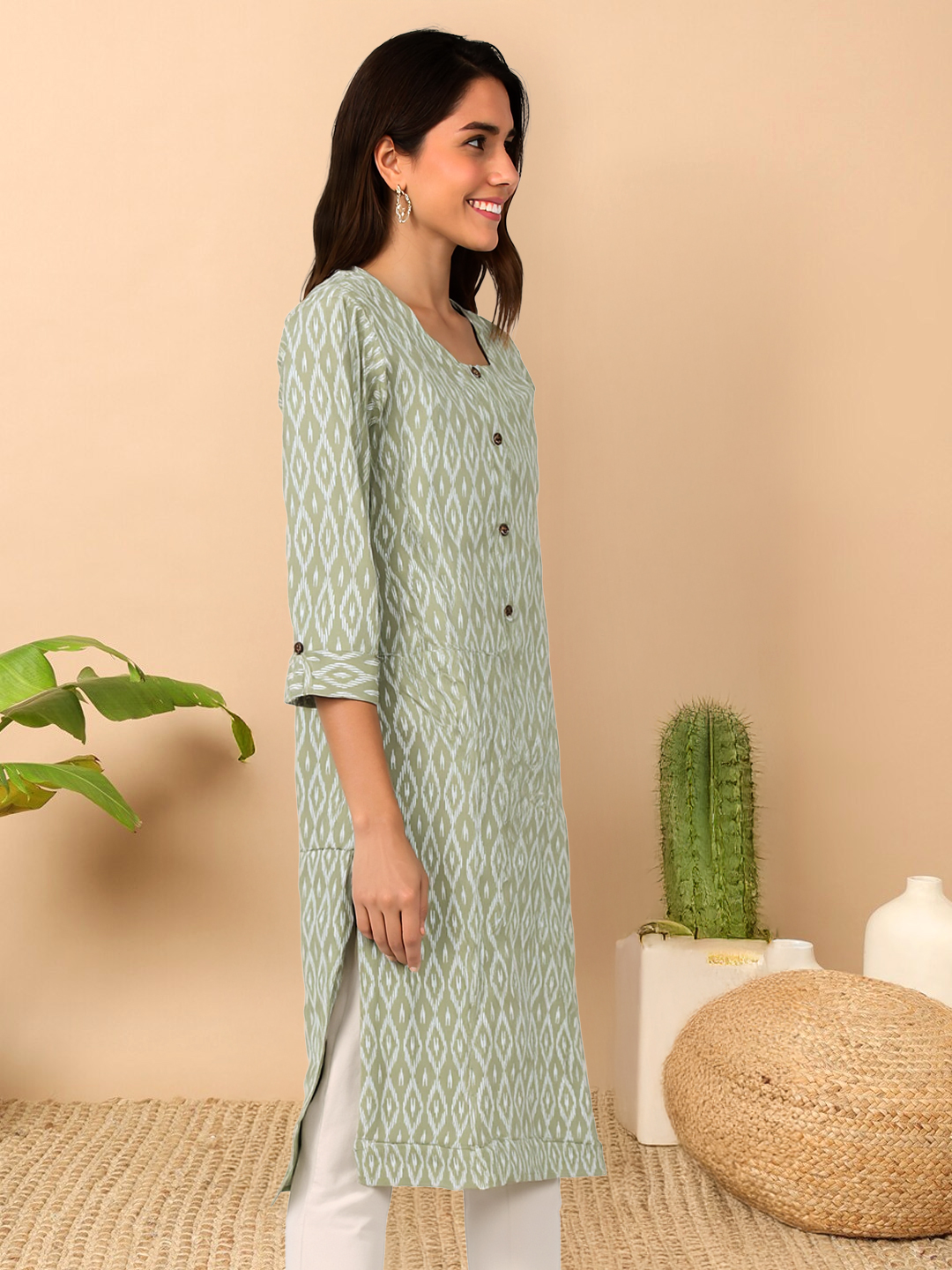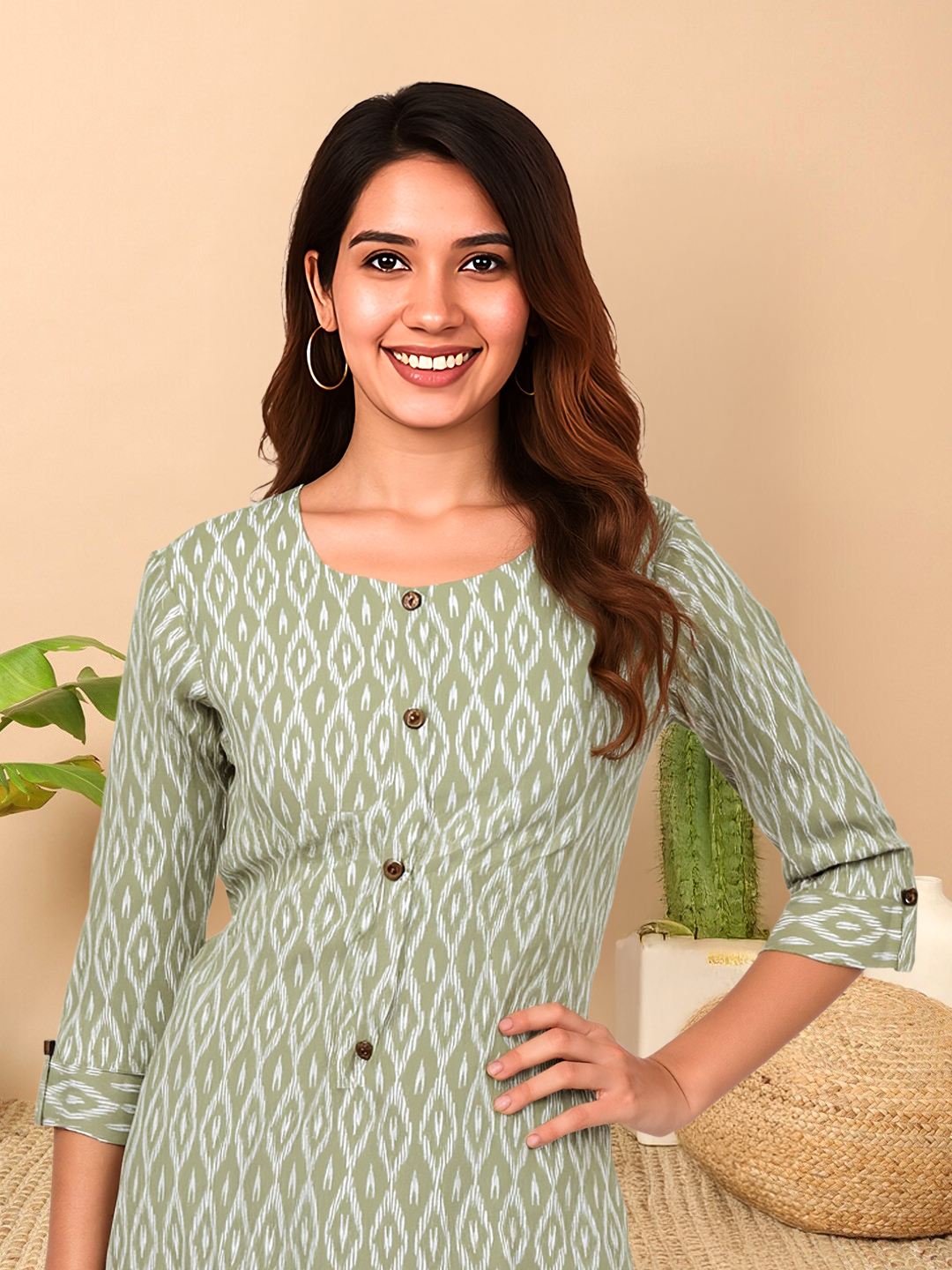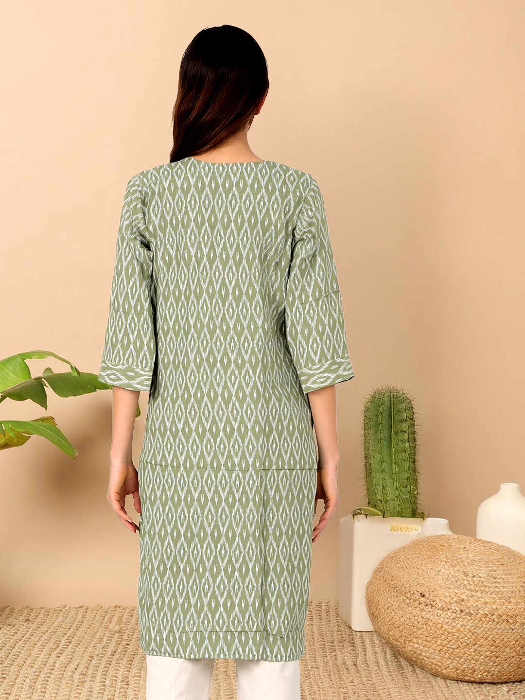 Crafted for lovers of ethnic elegance, the Ikat-inspired print blends rich cultural artistry with modern tailoring to create a versatile wardrobe staple.
