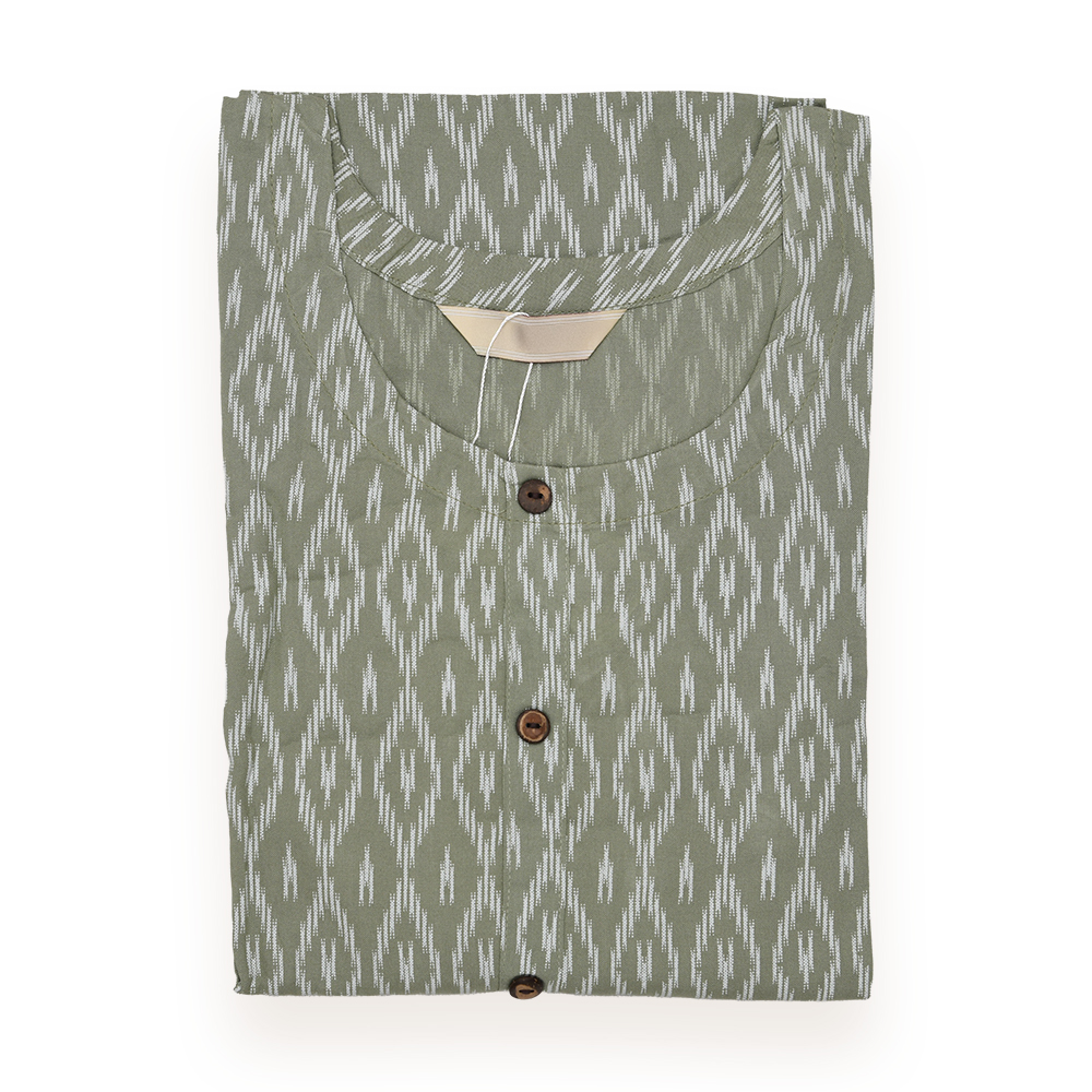 Immerse yourself in the timeless beauty of Ikat with this all-over geometric print kurta. The traditional design adds depth and culture to your everyday style.