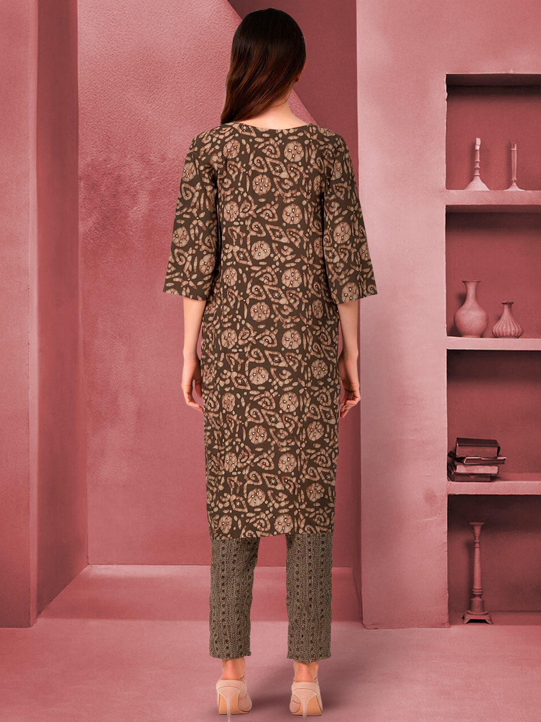 Classic prints meet modern design with the stylish three-quarter sleeves and the timeless appeal of the embroidered yoke. This kurta set offers a refined look that’s perfect for a variety of occasions—whether you’re attending a festive celebration or enjoying a casual day out.