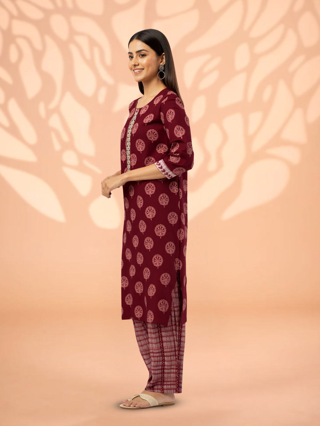 Enjoy the perfect blend of comfort and style with this lightweight kurta set. The easy-to-drape fabric makes it ideal for long wear, while the straight-fit pants and elegant printed cuffs give a polished, contemporary look. A wardrobe essential for everyday elegance.