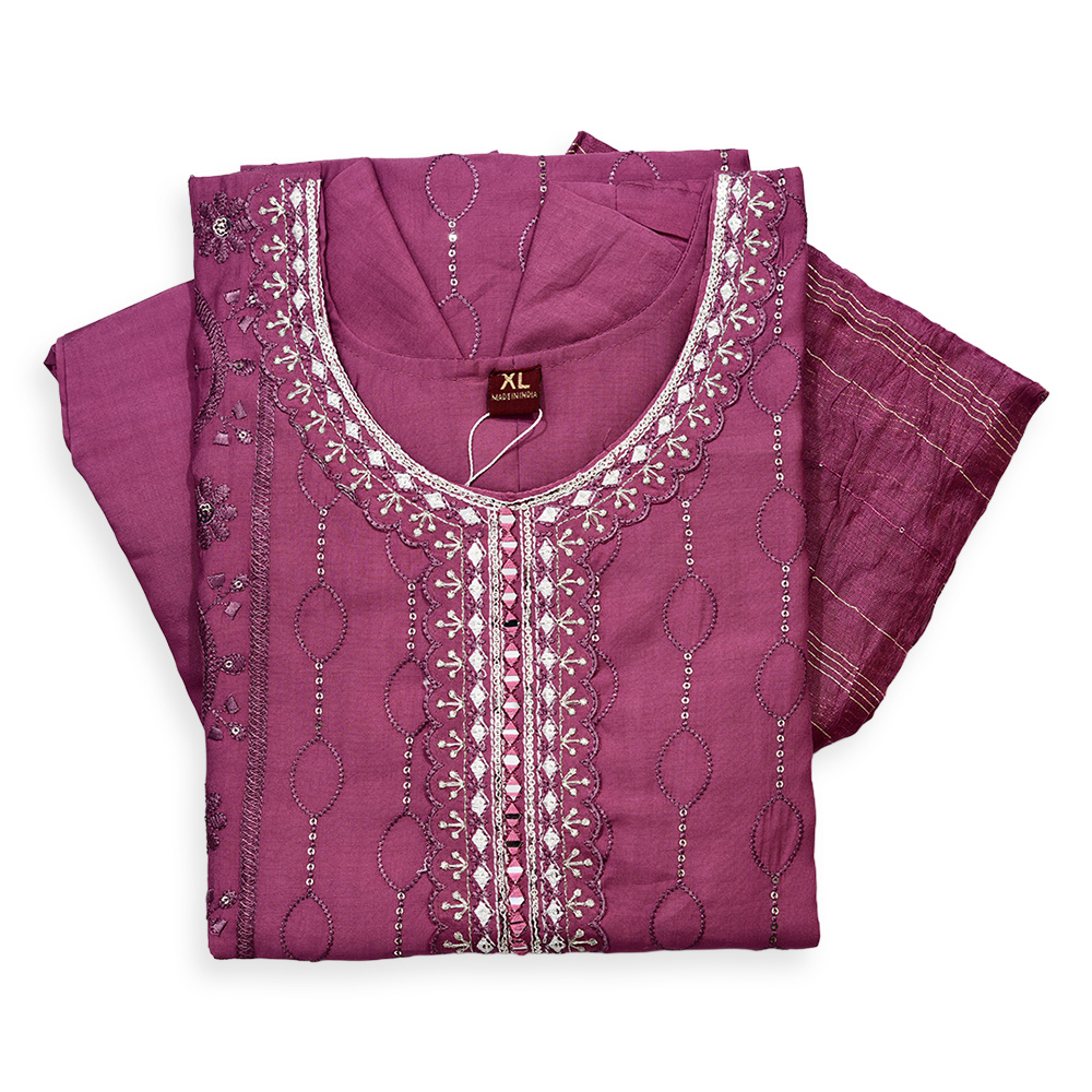 This Delicate Embroidery Round Neck Salwar Suit Set is a perfect blend of style and comfort. The fine embroidery detailing enhances its ethnic charm, while the classic round neck and premium fabric offer a sophisticated look for any event.
