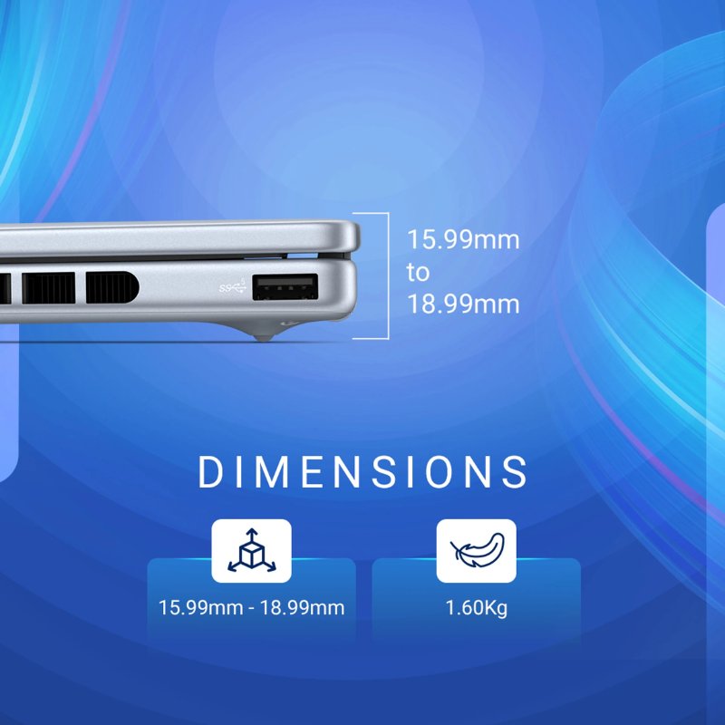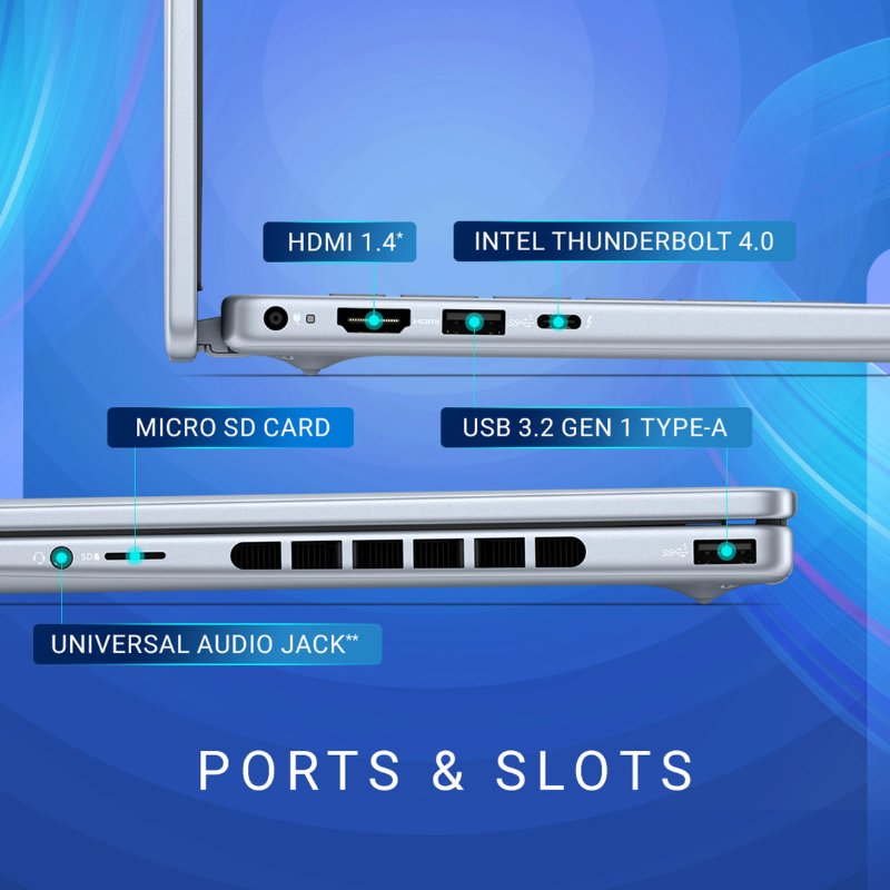 Weighing just 1.60 kg, the Inspiron 7440 is built for portability without compromising performance. The elegant Ice Blue finish adds a premium and refreshing look that stands out.