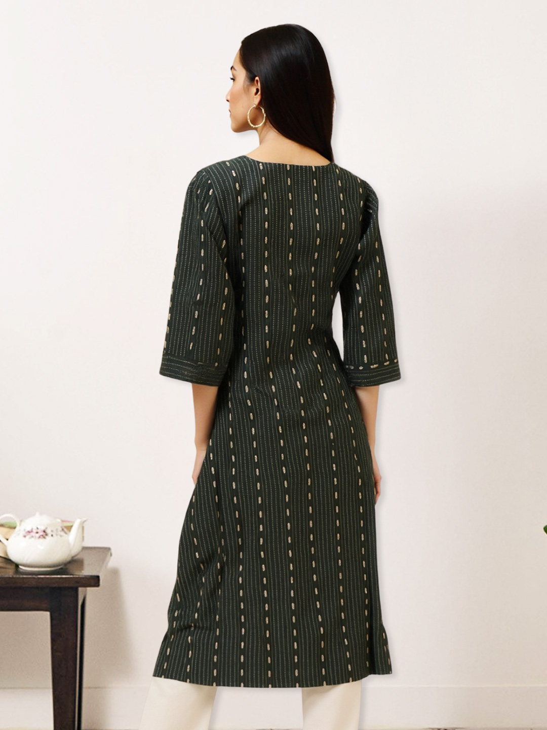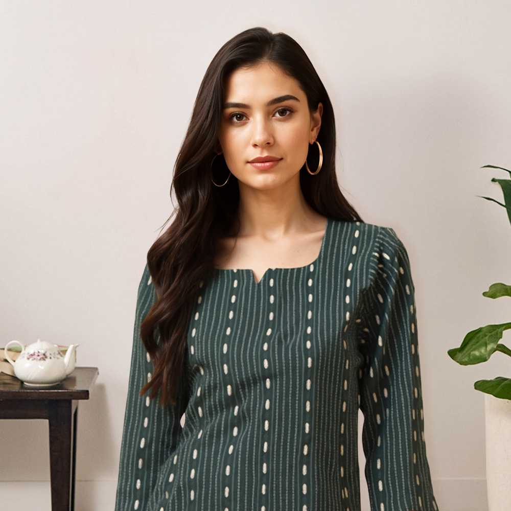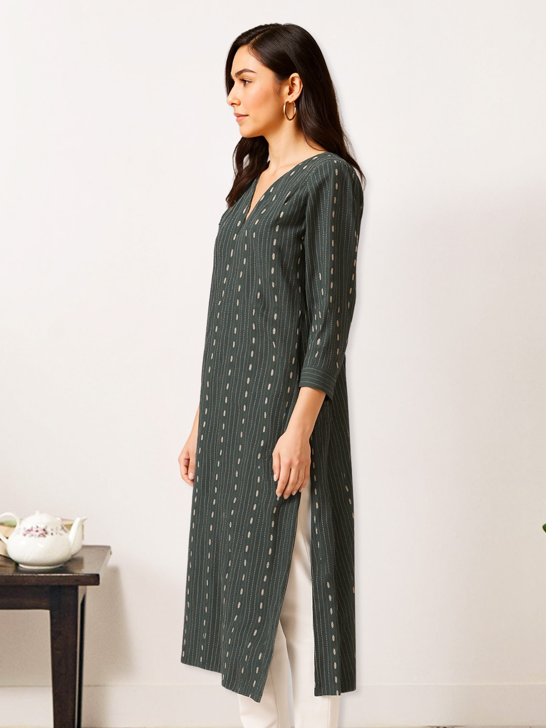 Crafted with 3/4th sleeves, this kurta ensures all-day comfort while keeping your style game strong — whether you're at work, running errands, or catching up with friends.