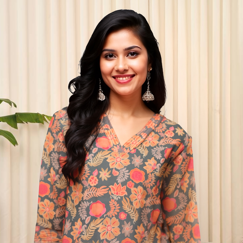 Embrace the beauty of nature with this floral print kurta, featuring an all-over pattern that brings fresh, natural energy to your wardrobe.
