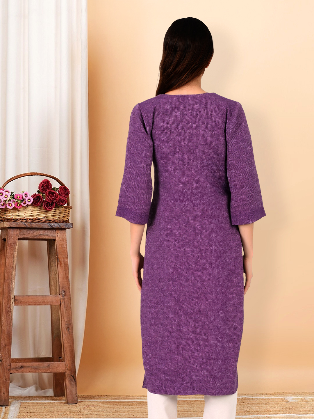 The kurta’s subtle texture creates a sophisticated visual effect, making it ideal for those who prefer minimalist fashion with a refined touch. Pair it with slim trousers or flowing palazzos to create a look that is as graceful as it is timeless.