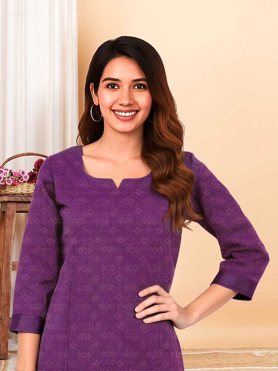 Designed with three-quarter sleeves, this kurta offers the ideal balance between style and practicality. Whether you're at work, brunch, or an evening gathering, the sleeve length ensures year-round comfort while keeping your style effortlessly polished.