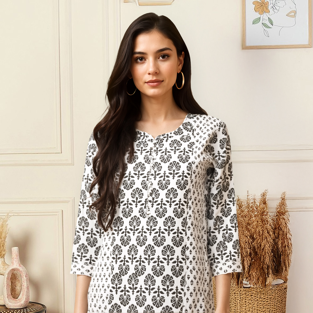 Subtle yet striking, the elegant print design gives this kurta a refined touch that never goes out of style. Pair it with your favorite bottoms for a chic everyday look.