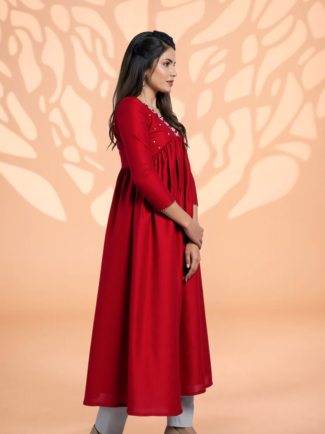 Intricately Embellished Aliya Cut Kurta with Relaxed Fit