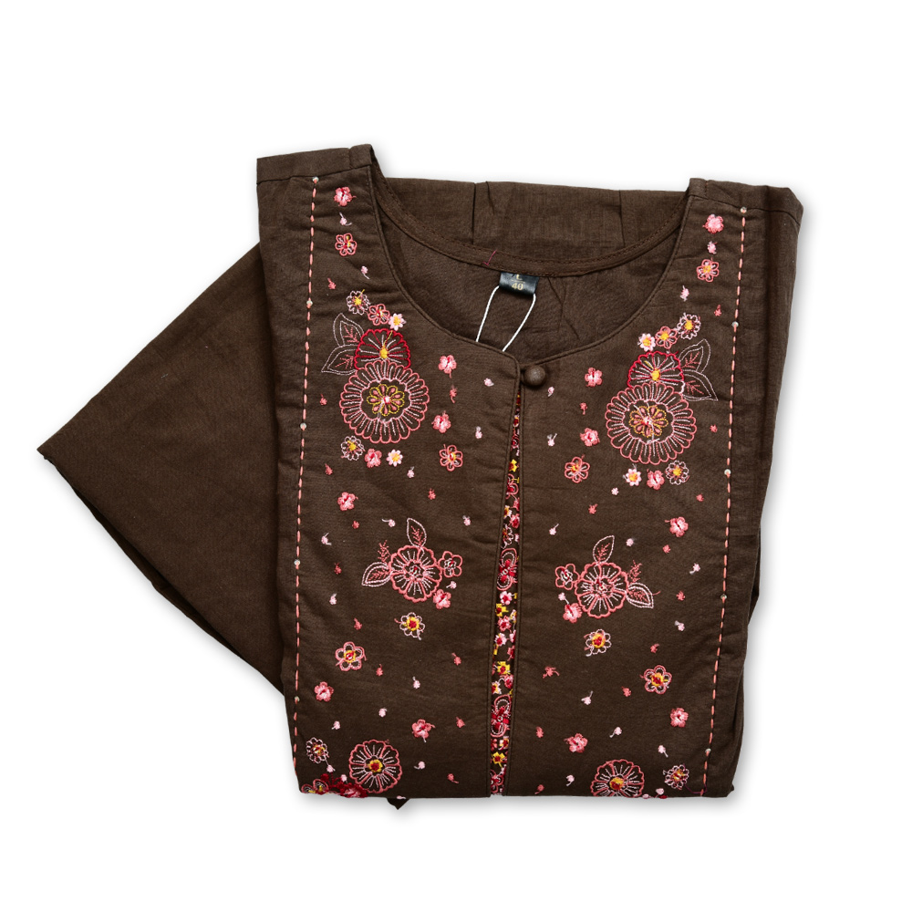 Bring home a perfect blend of elegance and ease with this embroidered threadwork kurta set. The intricate floral bodice and decorative layered neckline provide a stylish focal point, complemented by a gathered waistline that creates a soft, flowing silhouette.