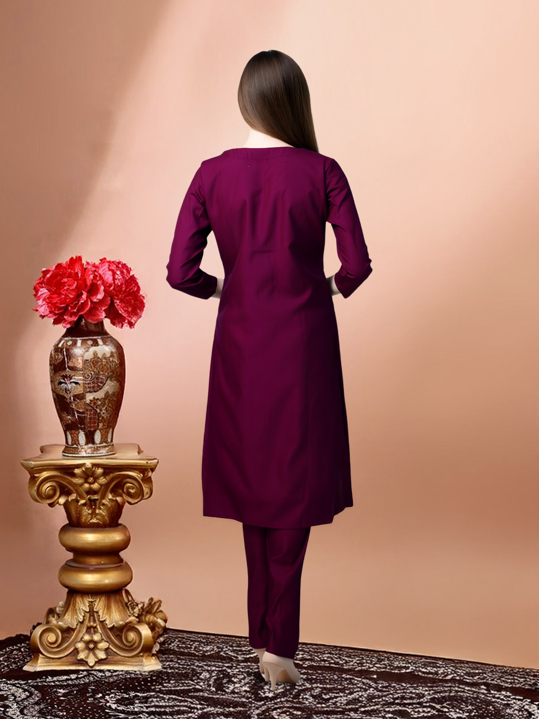 Designed for elegance, this kurta set features a straight-cut silhouette that enhances your feminine form. Soft, breathable fabric and classic 3/4th sleeves make it a versatile choice for celebrations, family gatherings, or festive events.
