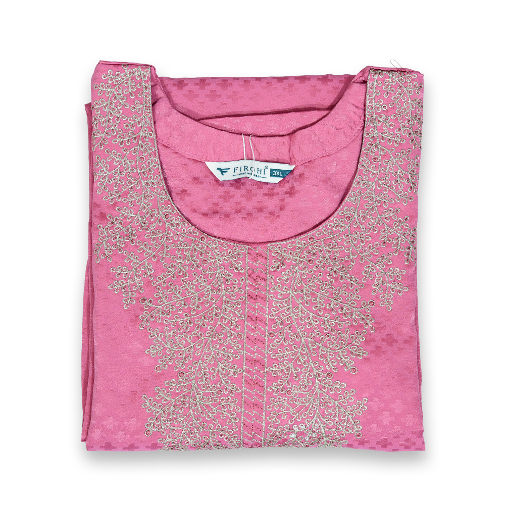 Experience the perfect blend of comfort and style. This kurta features delicate embroidery on a round neckline and a straight-cut design, made from soft, premium fabric that drapes beautifully.