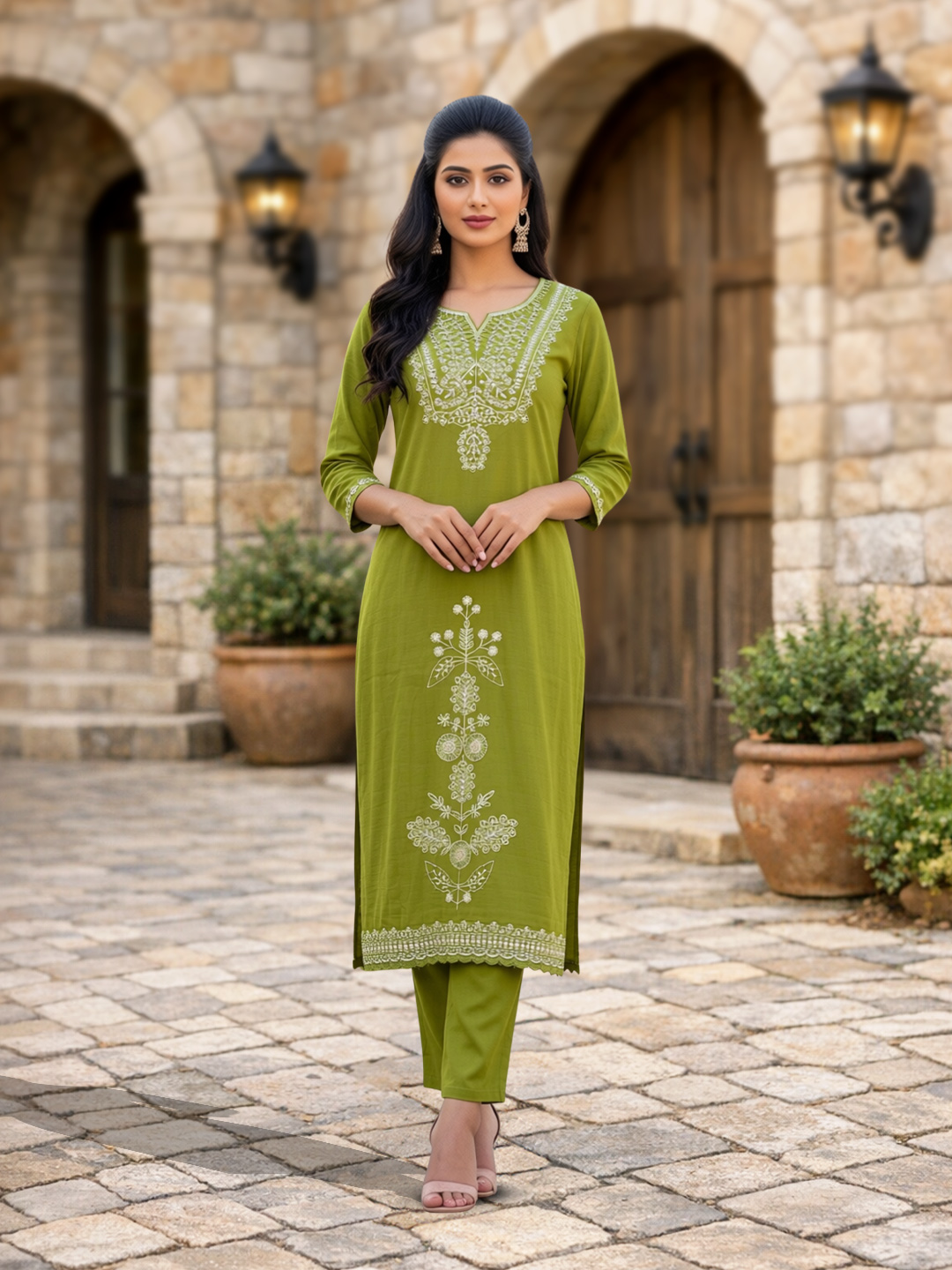 | Set includes | Kurta with matching pants & Dupatta |