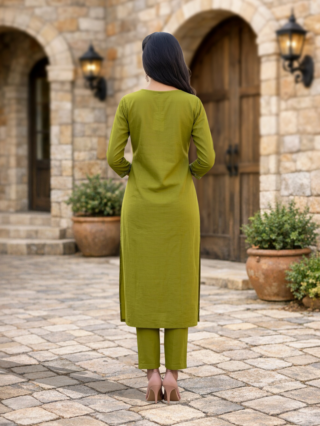 Designed with a straight-cut kurta, this outfit offers a sleek and elegant fit that complements all body types. It creates a balanced look while ensuring ease of movement and comfort.