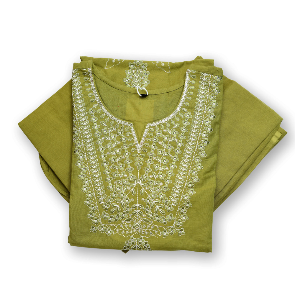 The kurta features intricate thread embroidery on the neckline and front, adding a graceful and traditional charm. The delicate detailing enhances the overall look, making it perfect for festive and ethnic occasions.