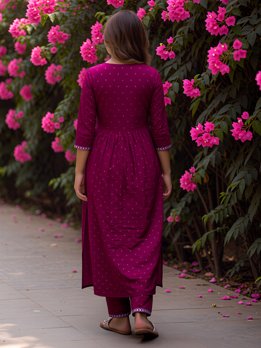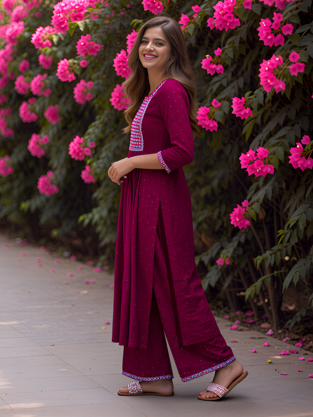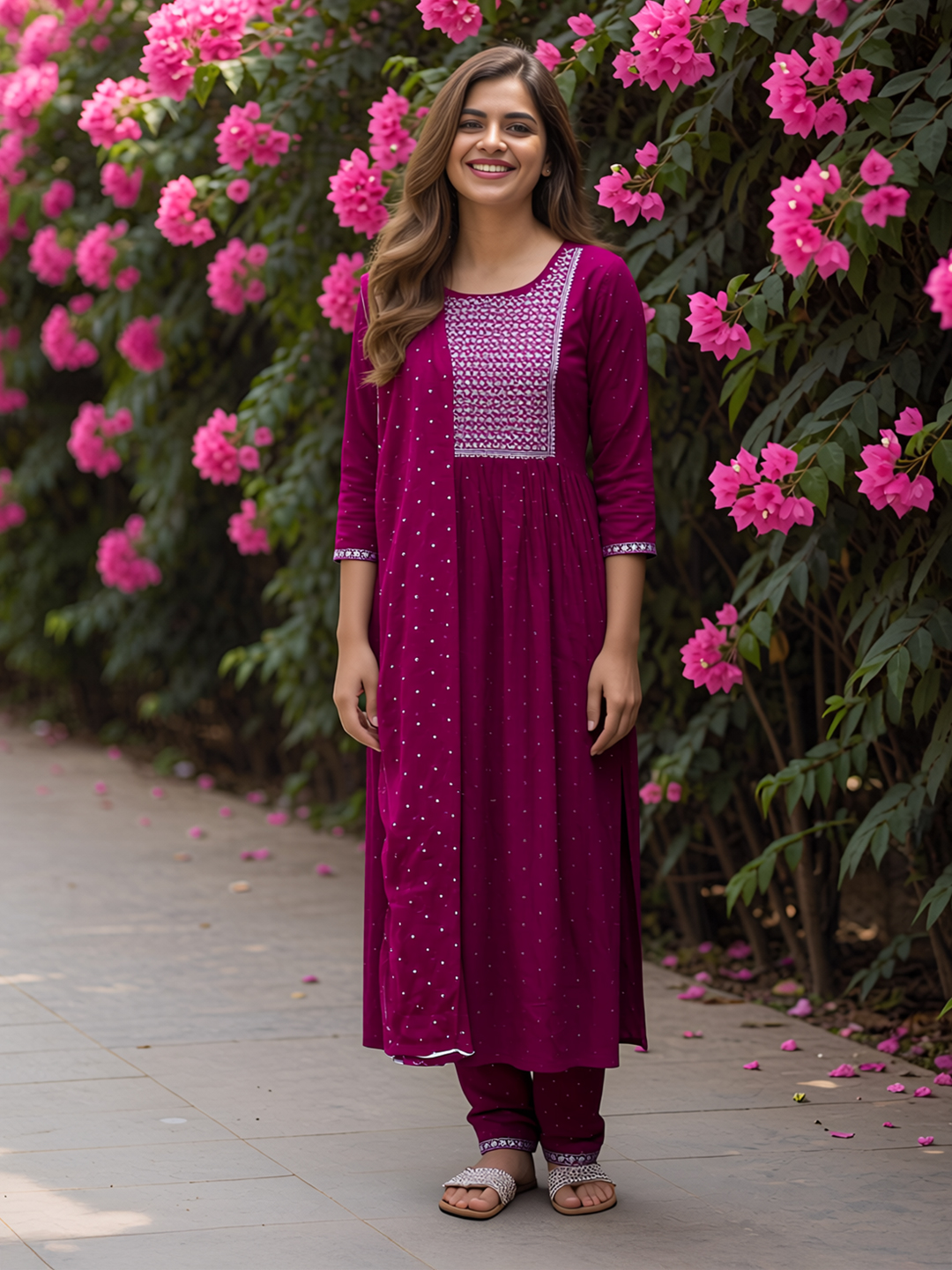 | Pant Type | Matching churidar pants with coordinated embroidery |