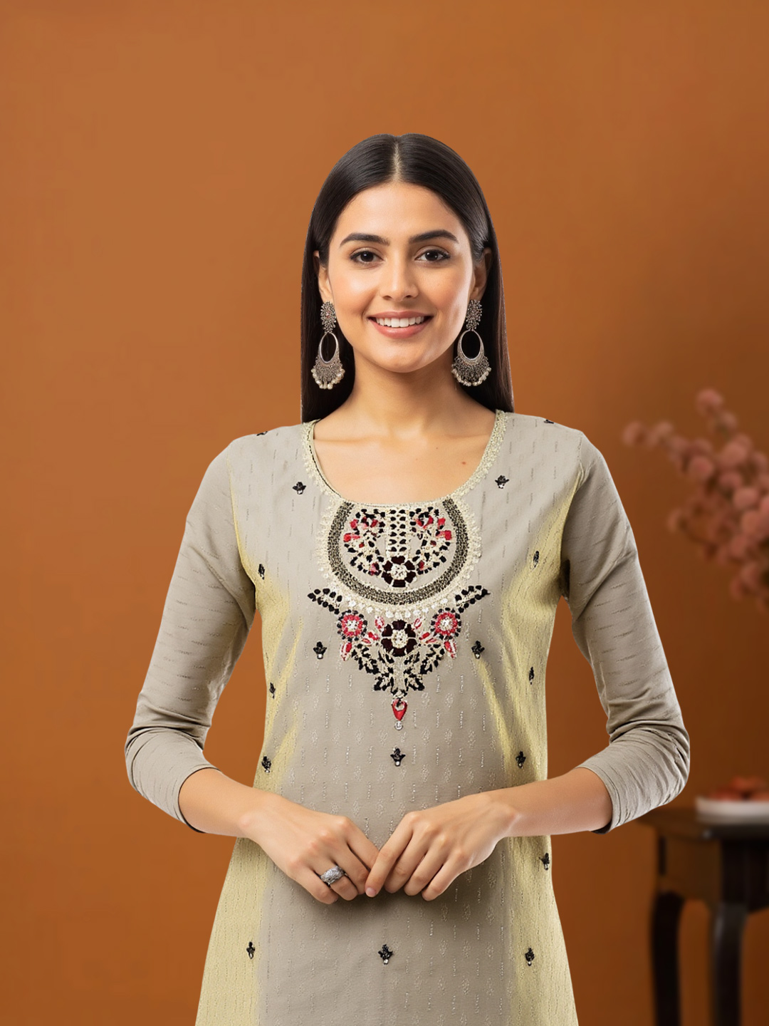 Experience the perfect blend of comfort and style with this salwar suit set. The matching straight pant gives a tailored silhouette, and the beautiful lightweight dupatta adds an airy, graceful touch. Ideal for day or evening occasions.