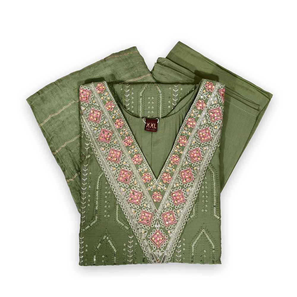 Embrace classic charm with the Elegant Ethnic Tradition V-Neck Embroidery Salwar Suit Set. Featuring intricate, hand-crafted embroidery on a premium fabric, this set exudes sophistication and grace. The delicate design brings a touch of artistry, making it perfect for festive occasions, family gatherings, or a traditional celebration.