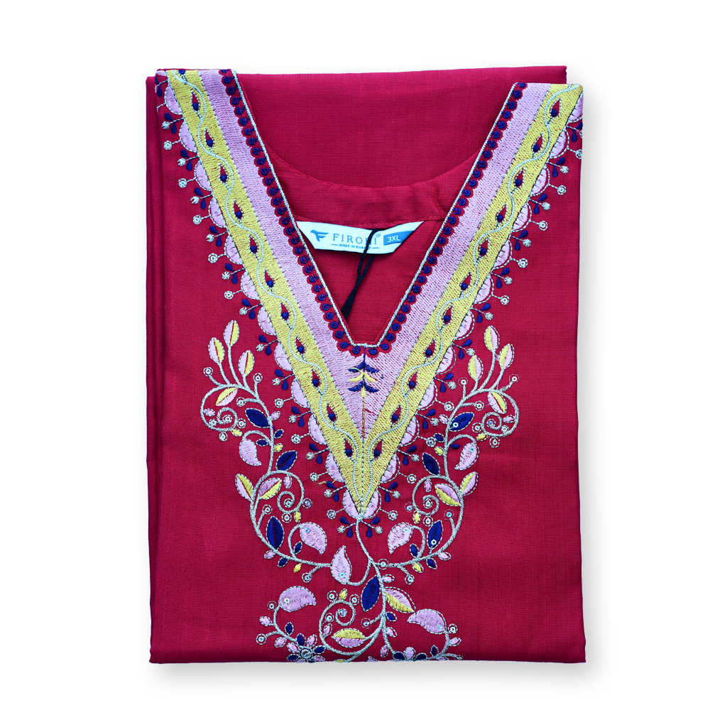 Embrace the art of traditional elegance with this V-neck kurta, adorned with exquisite floral embroidery. The intricate detailing at the neckline gives a delicate yet bold touch, capturing the essence of classic ethnic wear. Whether you're attending a wedding or a family gathering, this kurta will effortlessly elevate your look.