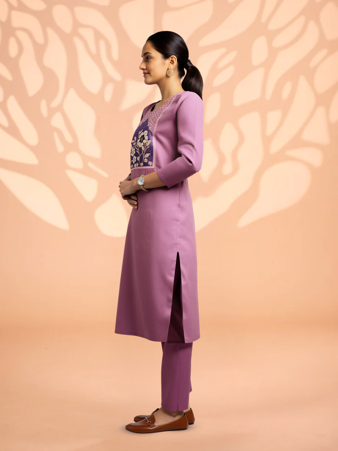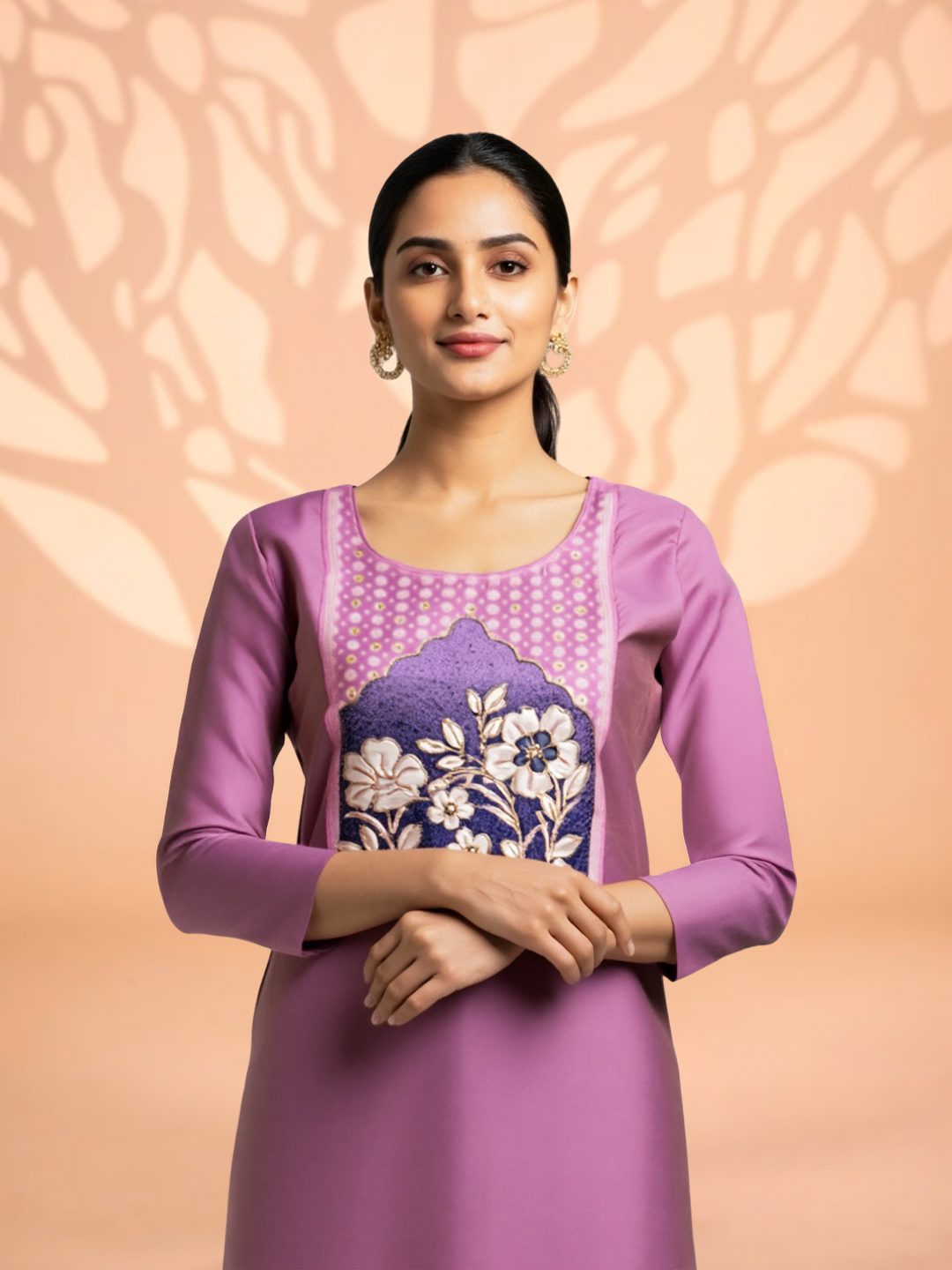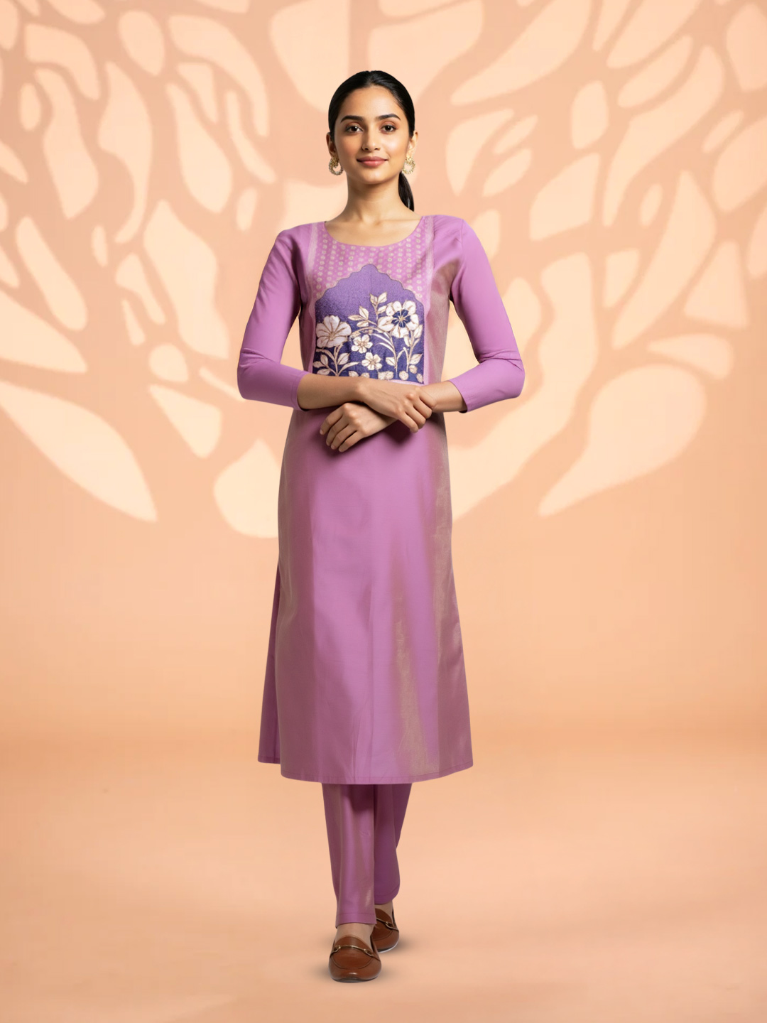 Shine bright with the Elegant Floral Embroidery Kurta Set, featuring a subtle yet radiant shimmer that adds an instant touch of glamour. Perfect for evening celebrations or festive occasions, this set ensures you stand out in style.