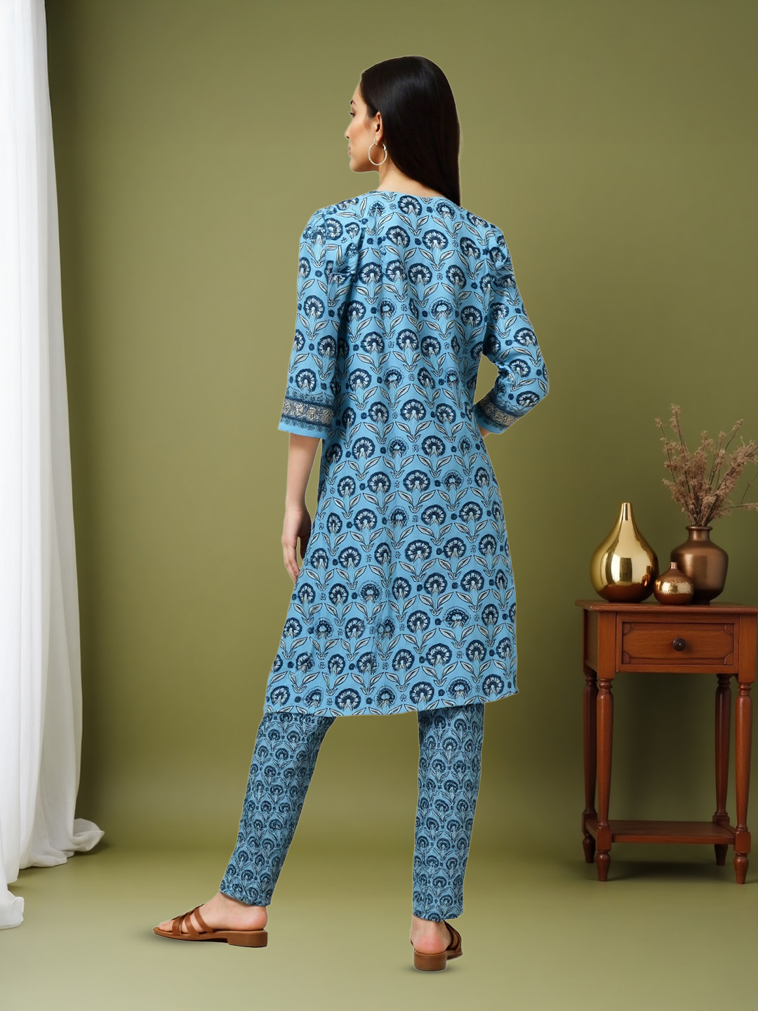 Floral prints are always in season, and this kurta brings nature’s beauty into your wardrobe. The soft blooms add a sense of freshness and romance, making it an ideal outfit for events that celebrate life and joy. Whether you’re attending a wedding or a brunch date, this set is sure to turn heads with its timeless floral charm.