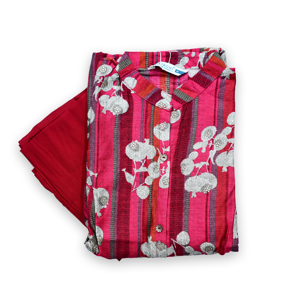 Celebrate nature’s beauty with the Elegant Floral Print Sleeveless Kurta with Pant Set. The mandarin collar adds a structured, sophisticated element, while the charming floral print gives the kurta a fresh, youthful appeal. The 3/4 sleeves provide the perfect balance of coverage and comfort, and the matching straight pants complete the look with a modern, flattering fit. Made with comfortable fabric, this set is designed for those who appreciate both style and ease in their everyday wardrobe.