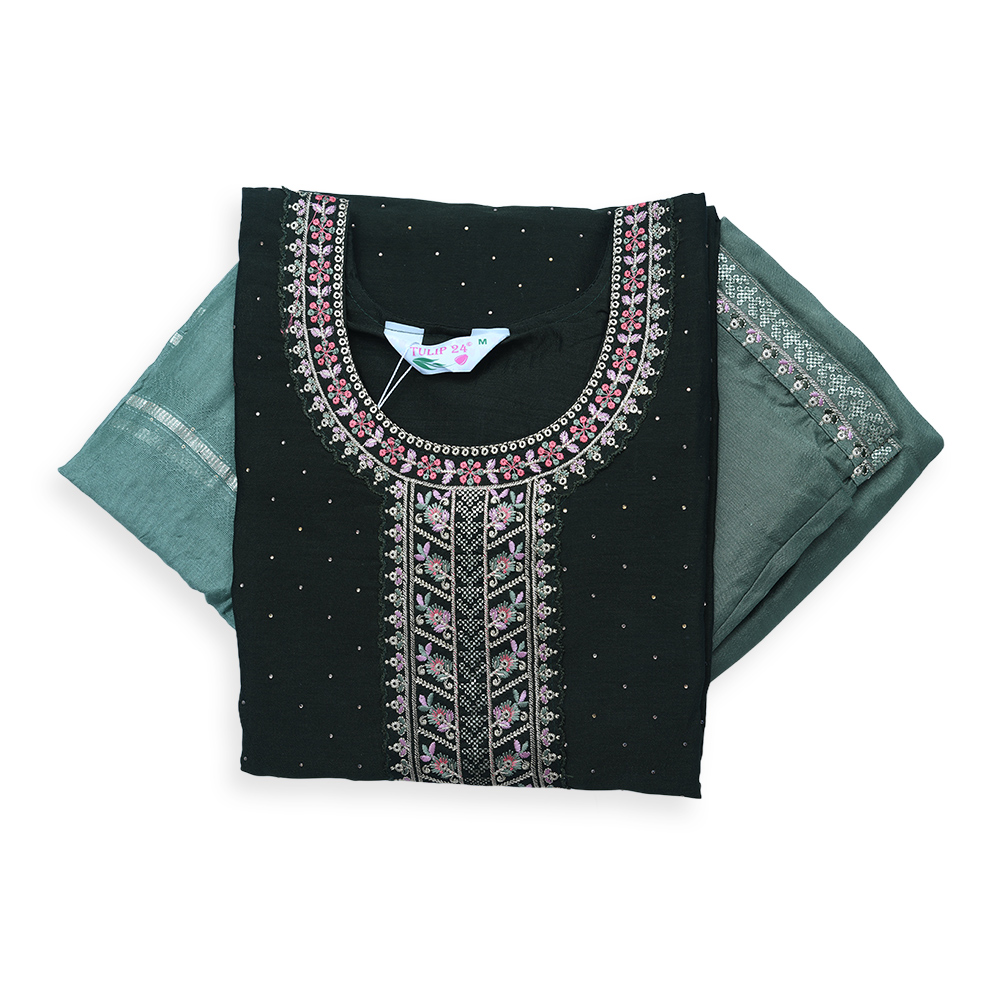 Designed for modern women who love subtle elegance, this salwar suit set showcases delicate floral threadwork with stone accents. The minimalist dotted pattern adds depth to the design, making it suitable for both daily wear and special occasions. Its breathable fabric, comfortable fit, and stylish dupatta make it a wardrobe essential.