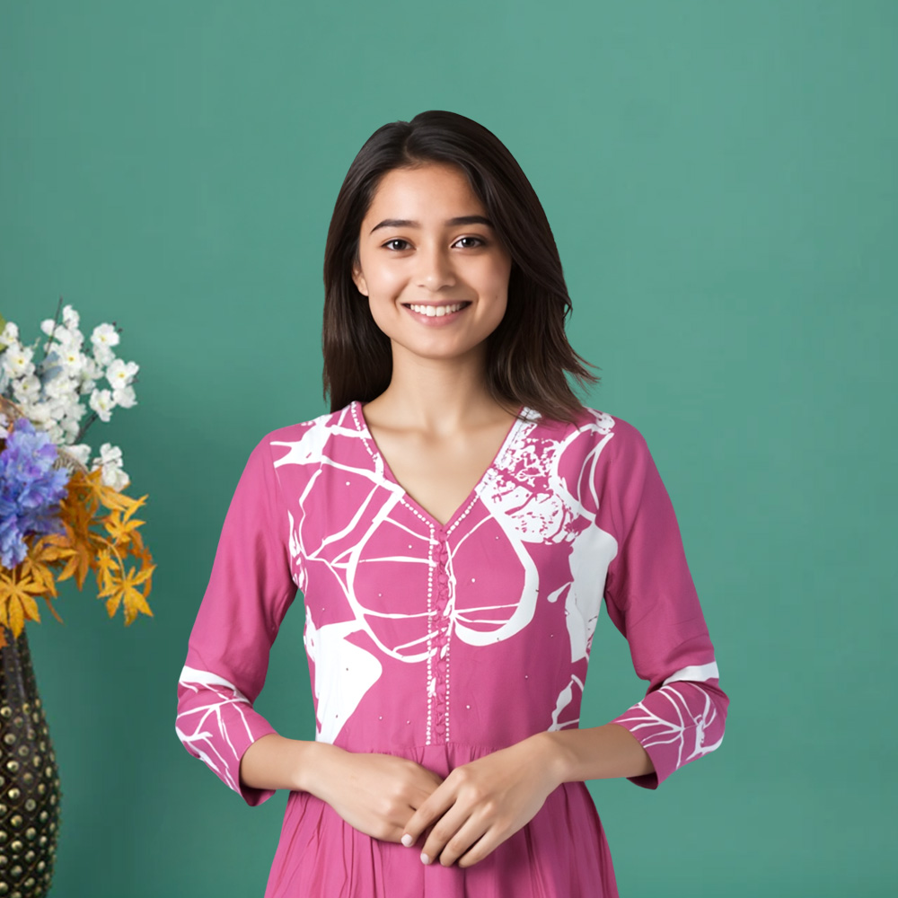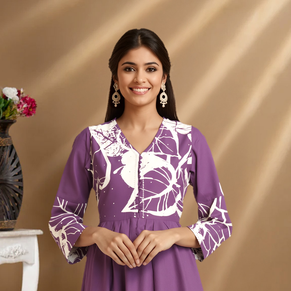 Designed with three-quarter sleeves, this kurti offers a refined and versatile look that’s perfect for work, casual outings, or semi-formal occasions. Pair it with your favorite accessories to complete the look.