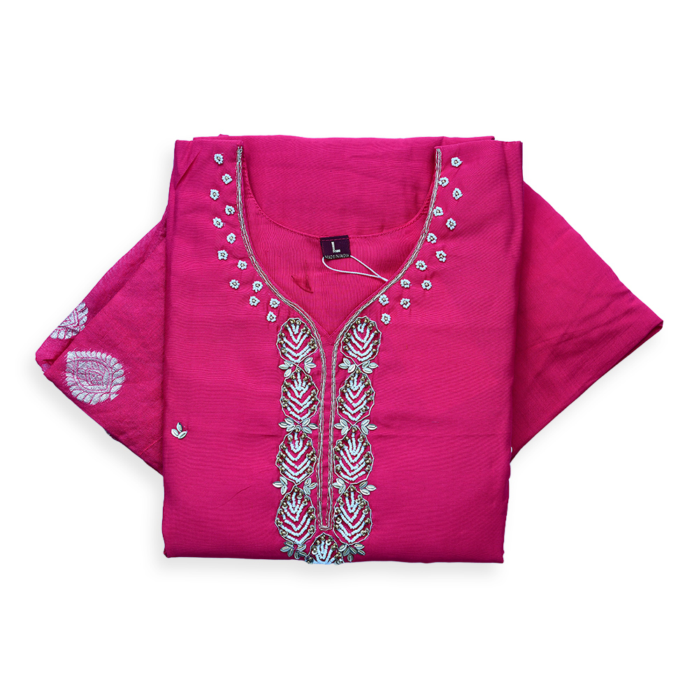 Elevate your ethnic wardrobe with this stunning salwar suit set. The delicate aari embroidery on the neckline adds intricate detailing, creating a refined and elegant look for festive occasions or family gatherings.