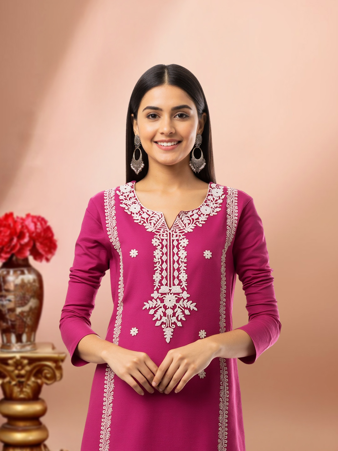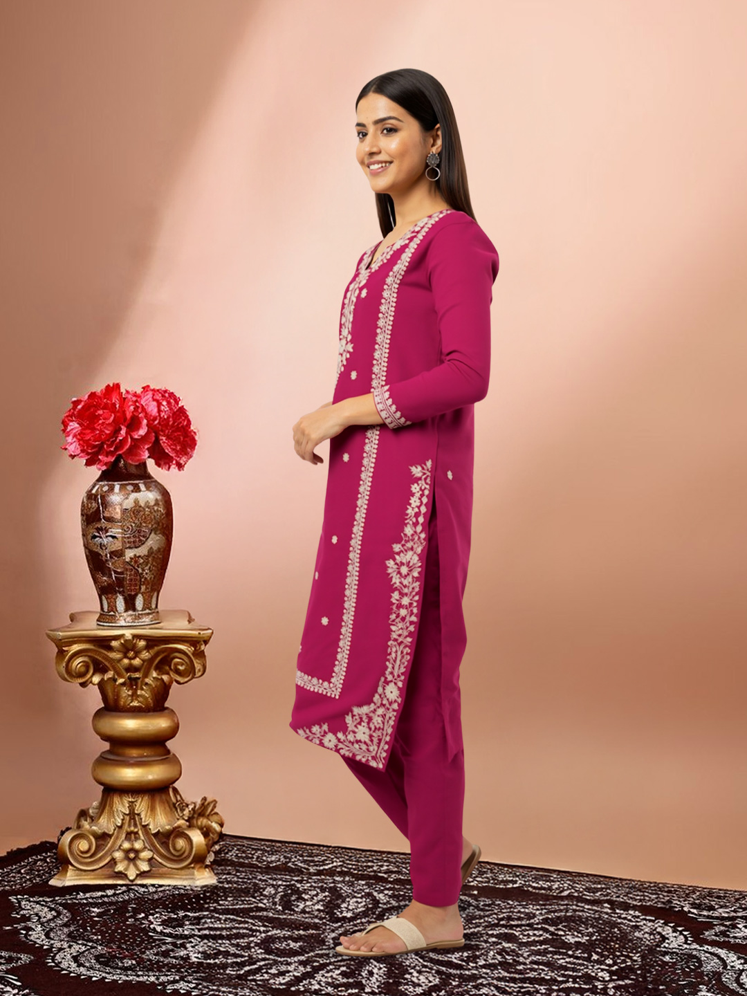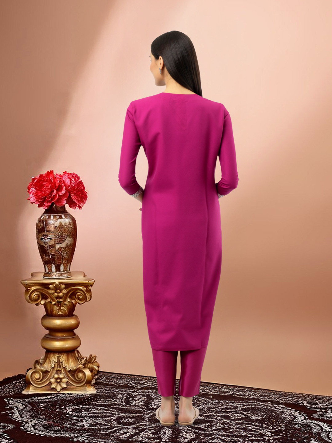 Feel the luxury of premium-quality fabric with this exquisite Salwar Suit Set. Soft yet durable, it promises comfort and a perfect fit. The notched neckline enhances its classic appeal, while the detailed elegant embroidery makes this outfit truly special. Complete the look with the stunning traditional dupatta, and you're ready for any occasion, from weddings to family gatherings.