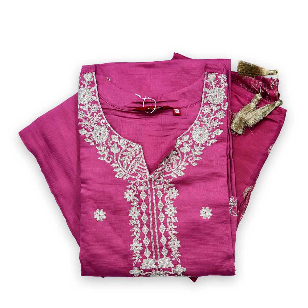 Step into elegance with this beautifully designed Salwar Suit Set. Crafted from premium-quality fabric, it features a stunning notched neckline and elegant embroidery that speaks to refined taste. The ensemble is completed with a traditional dupatta that drapes gracefully, adding a timeless touch to your look. Whether for a wedding, festival, or special family occasion, this suit ensures you shine with every step.