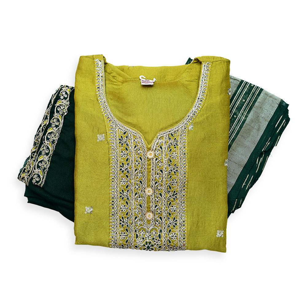 This traditional salwar suit set blends timeless embroidery with modern comfort. Crafted from premium breathable fabric, it keeps you at ease throughout the day. The contrasting pants and complementing dupatta add a stylish finish to this effortlessly chic ensemble.