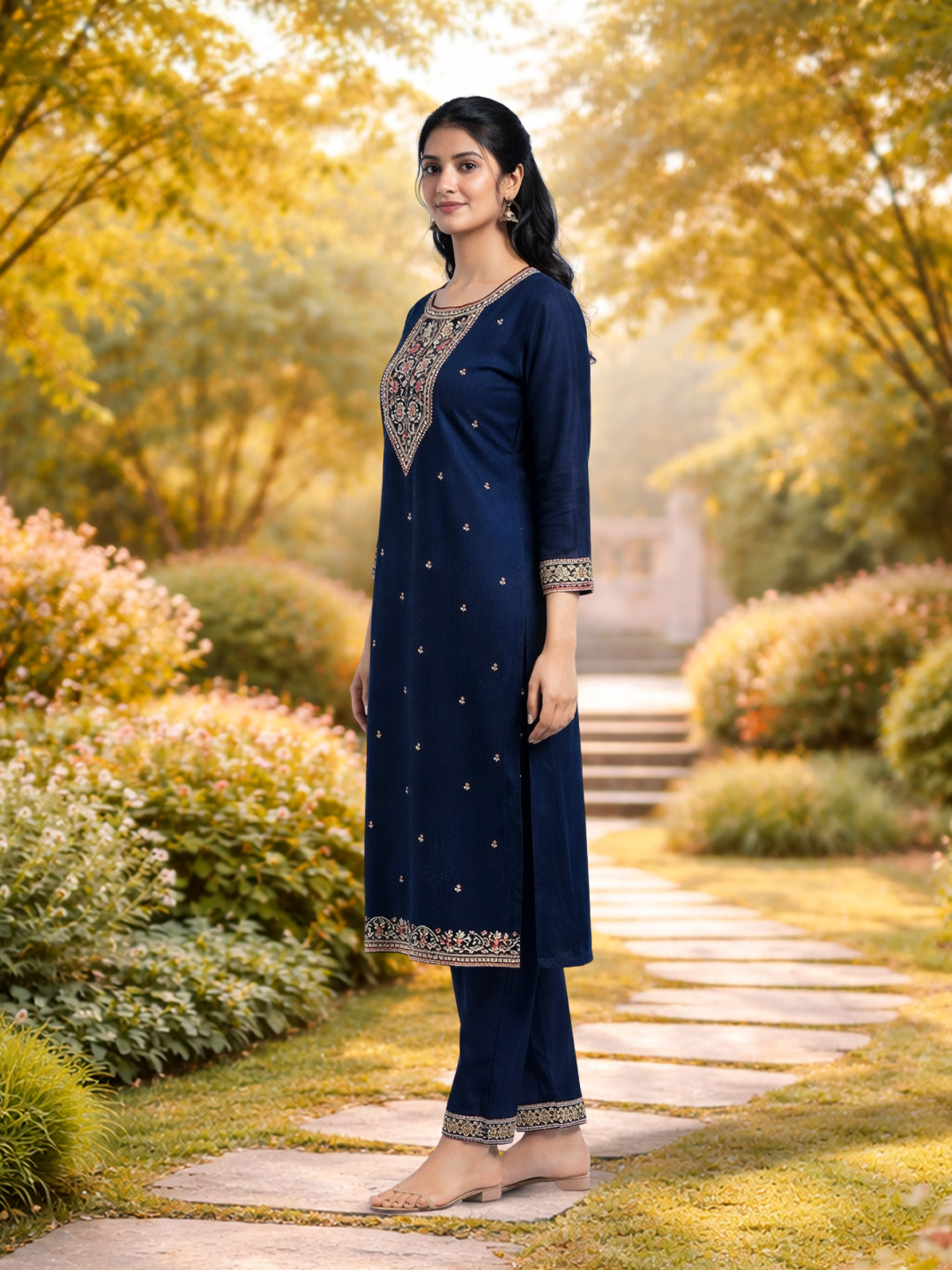 | Set includes | Kurta with matching pants & Dupatta |