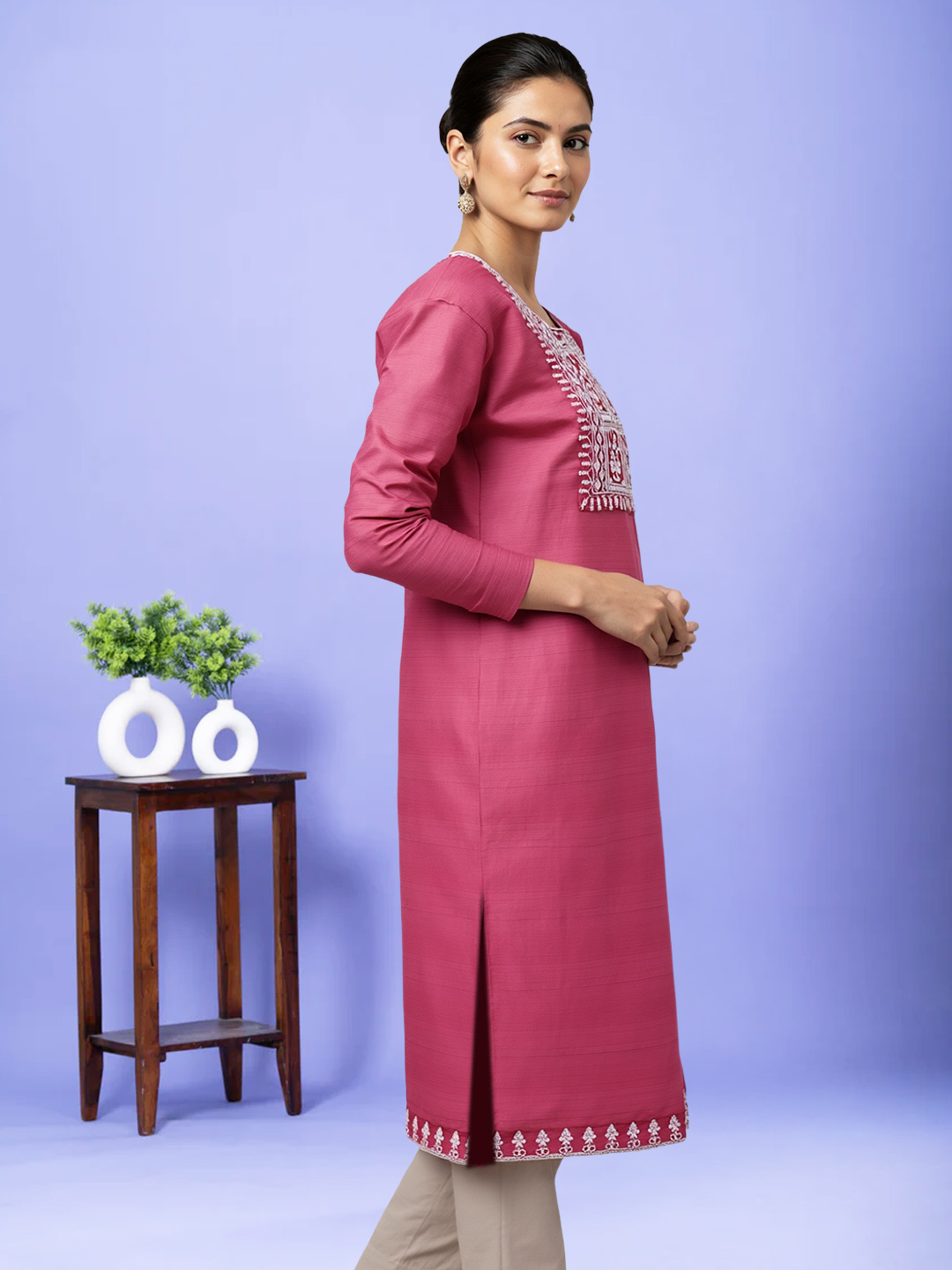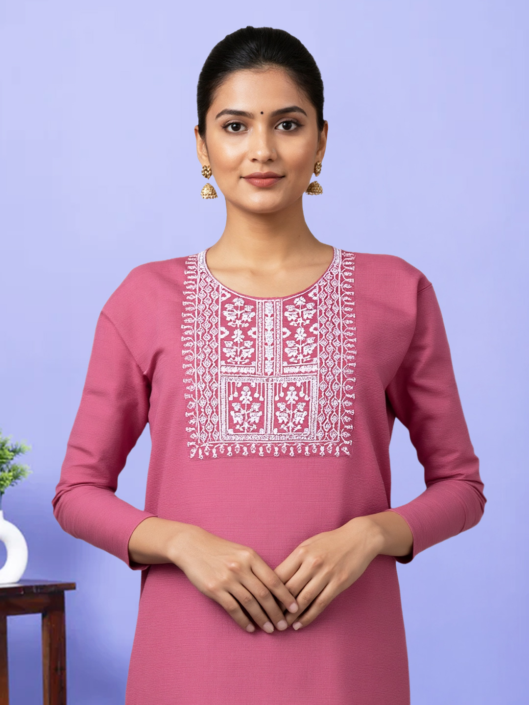 This kurta features beautifully detailed embroidery that adds elegance and charm, making it a standout piece for both casual and festive occasions.