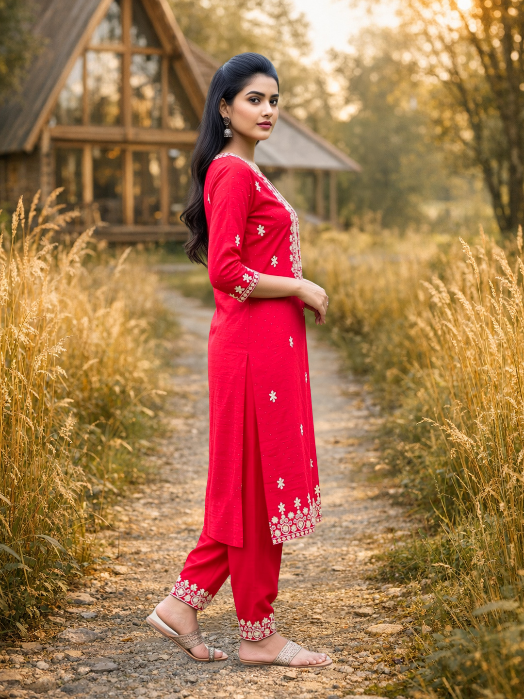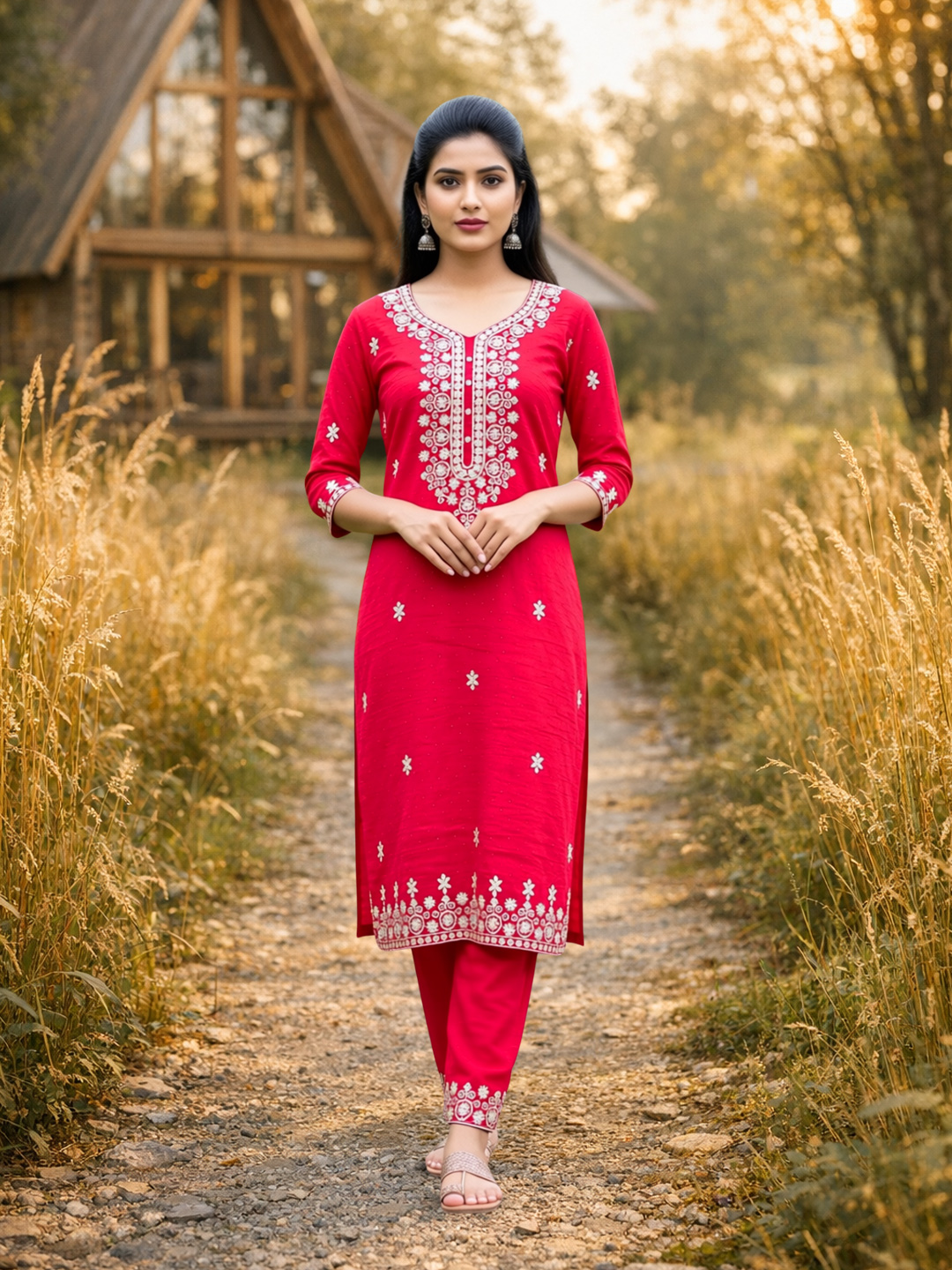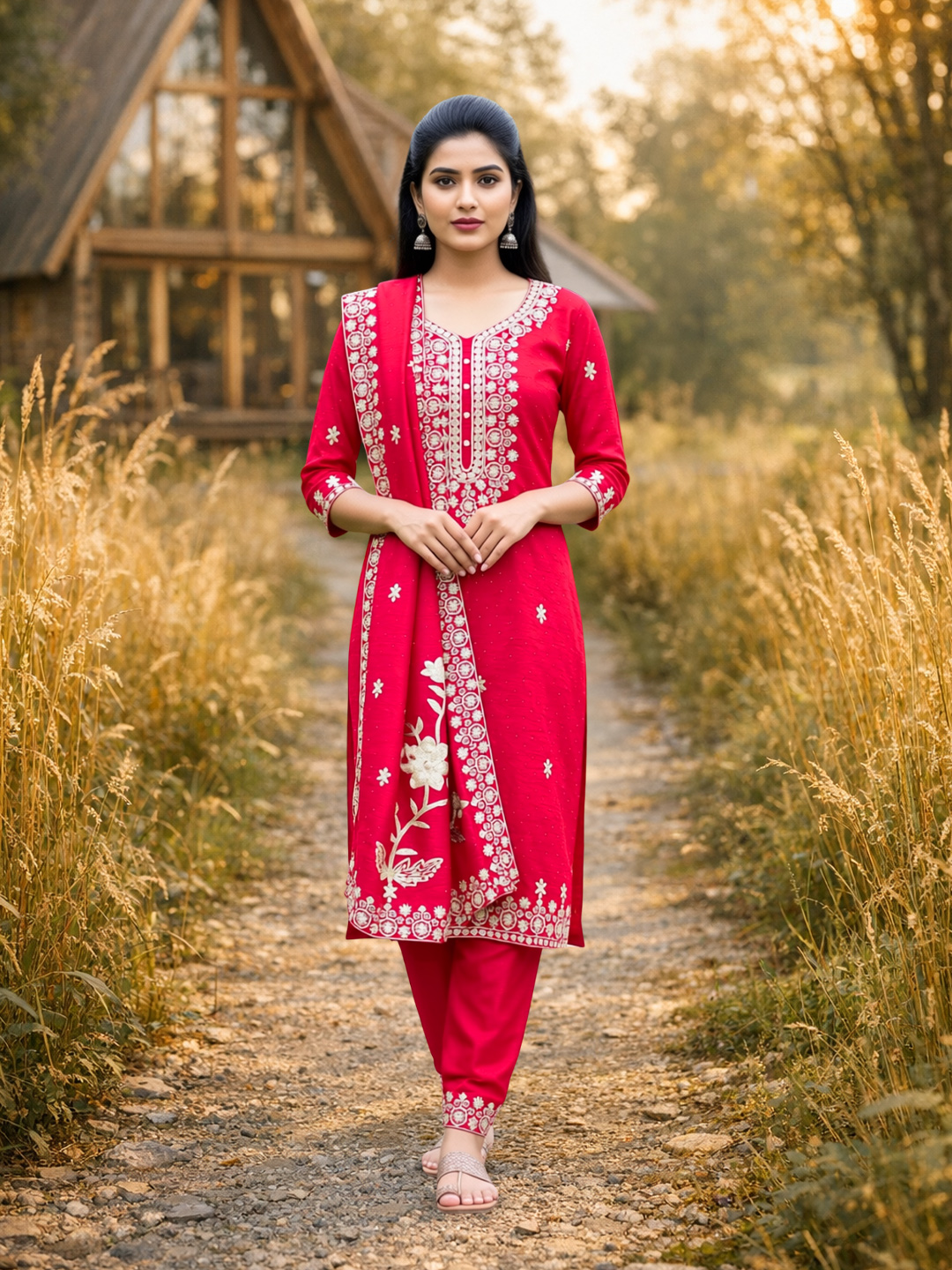 | Set includes | Kurta with matching pants & Dupatta |