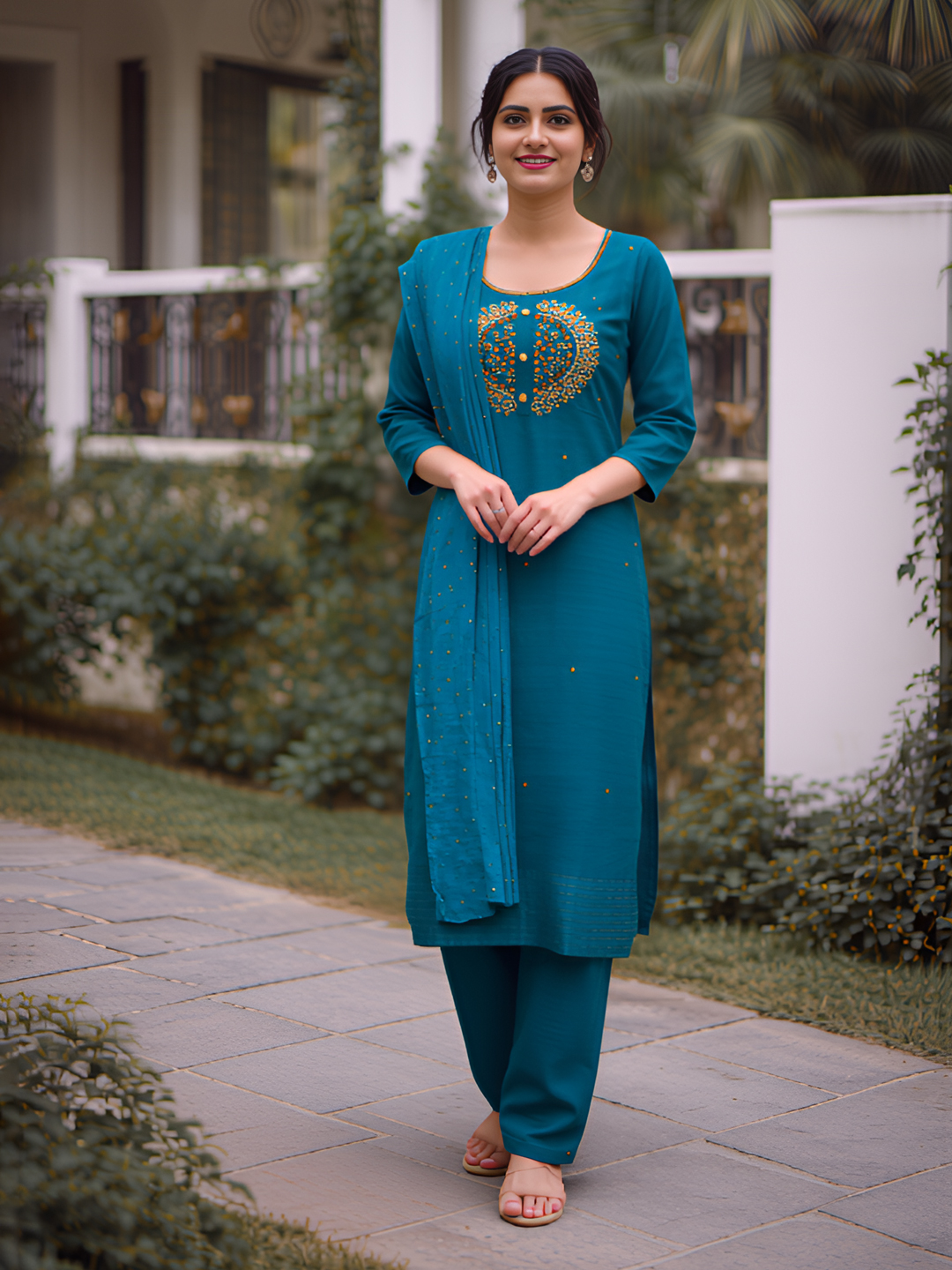 | Set includes | Kurta with matching pants & Dupatta |