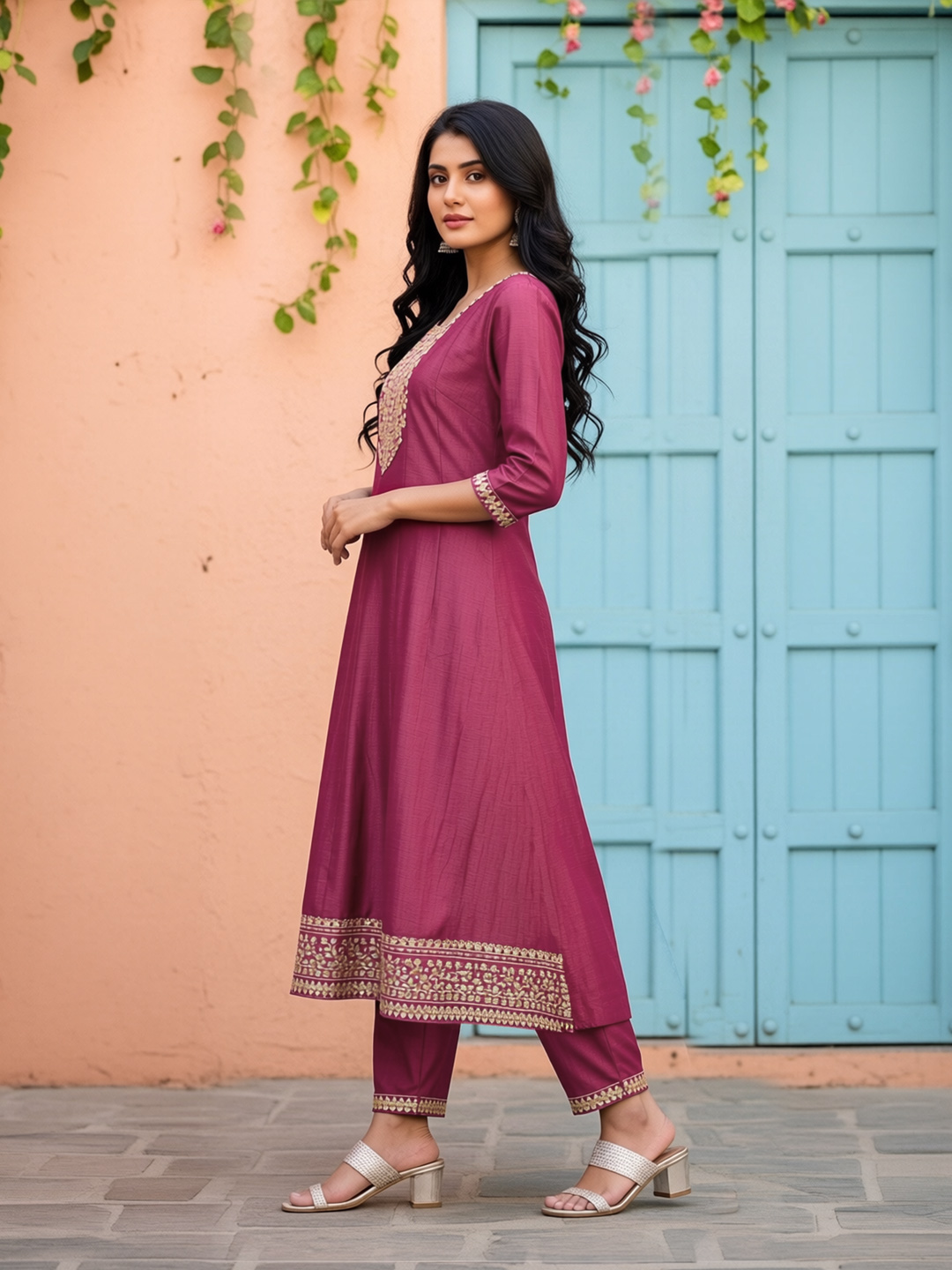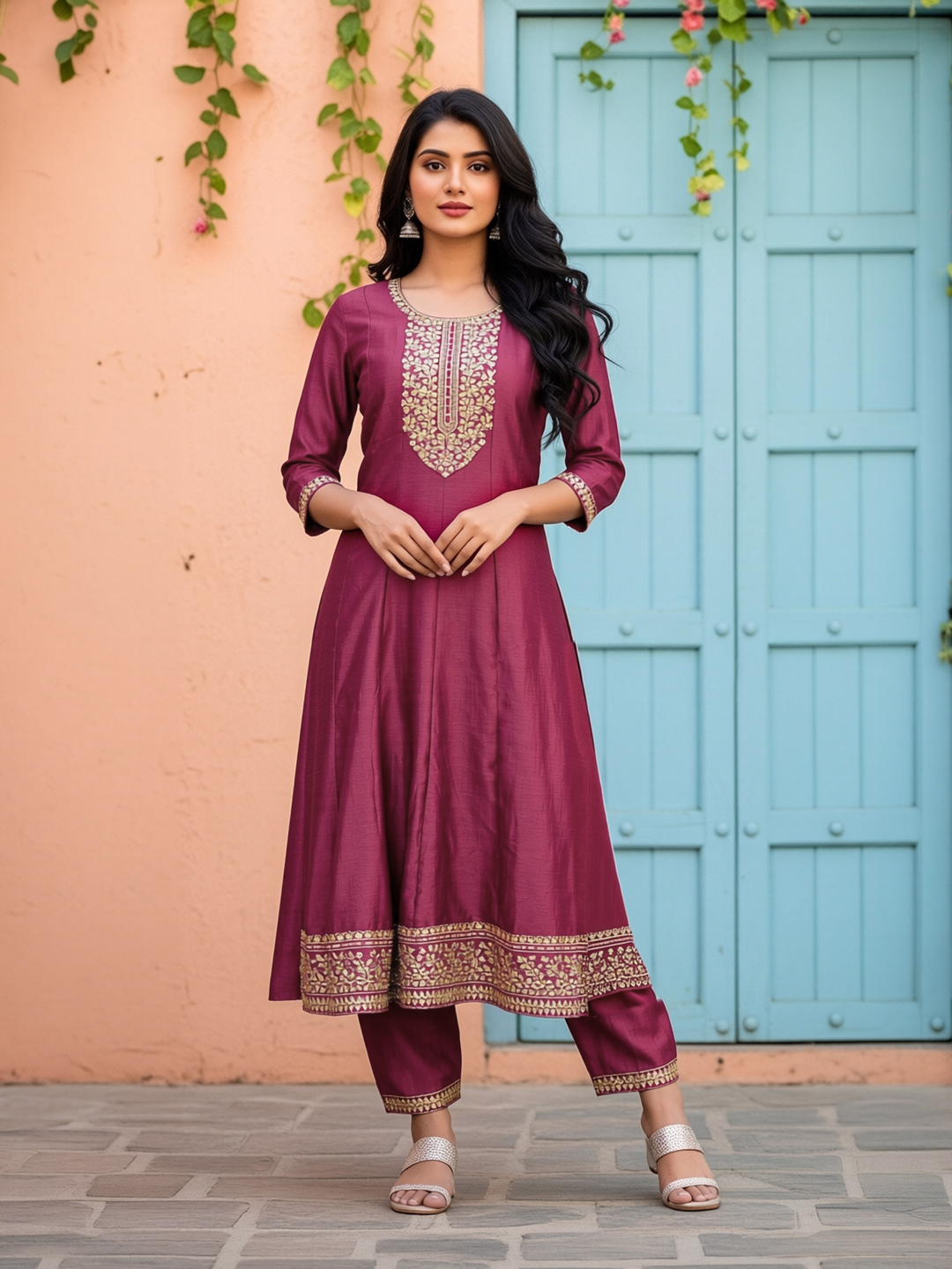 | Pant Type | Matching churidar pants with coordinated embroidery |