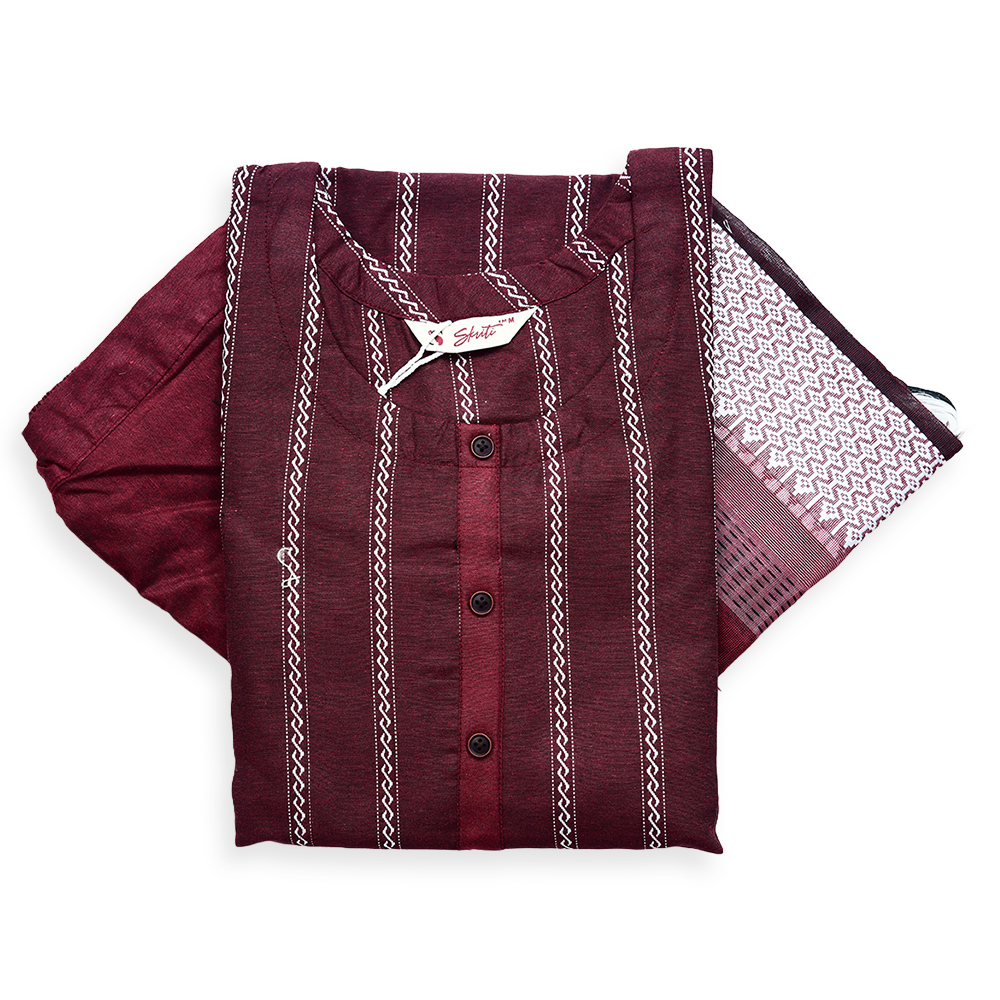 Gracefully tailored for a clean and flattering fit, this salwar suit set stands out with its woven stripe detailing and balanced straight cut. The soft, breathable fabric keeps you comfortable all day, while the round neckline and button placket add subtle refinement. Paired with coordinated straight-fit pants and a beautifully woven dupatta finished with tassels, this ensemble delivers timeless charm with modern appeal.