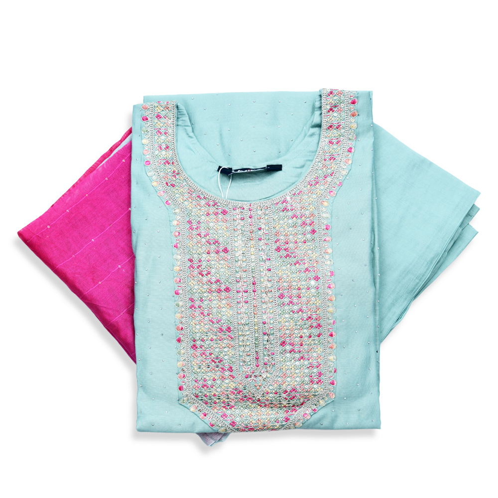 Designed for elegance and comfort, this salwar suit boasts intricate embroidered details, a flattering straight-cut silhouette, and breathable fabric. The matching pants and ombré-accented dupatta make it perfect for festivals, family gatherings, or casual celebrations.